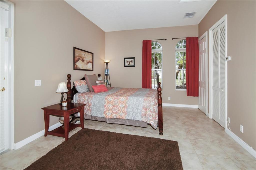 Waterfront Courtyard Home on oversize lot w/pool. Main House is 2609 sq ft , 4 bed, 2.5 bath, 1st floor living, dining, family, open granite, wood, stainless steel kitchen, ½ bath, 2nd floor: Split plan, master suite, walk in closet, bath, 3 bedrooms share hall bath. Separate Guest house is 304 sq ft w/full bath & AC. Home warranty included.