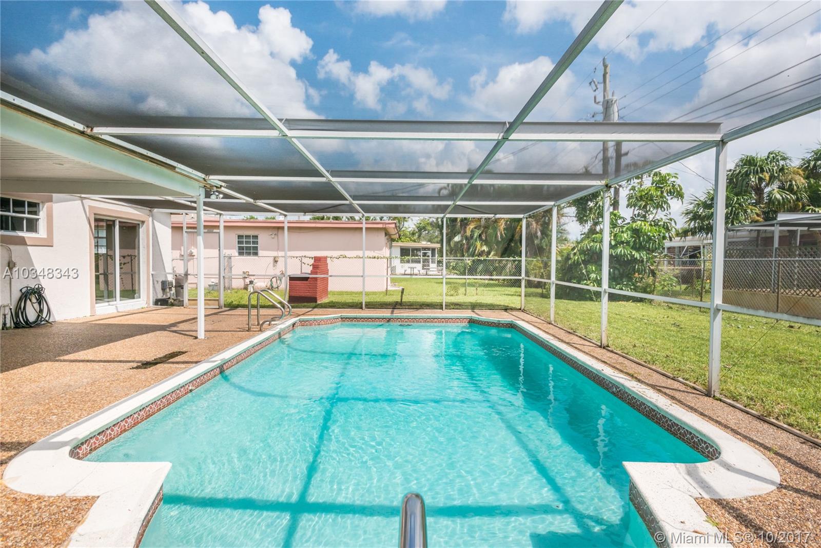 Immaculate pool home in great Pembroke Pines neighborhood on a quiet no-thru street. Updated kitchen with stainless steel appliances and renovated bathroom. Completely tiled throughout the home. Sparkling pool with screened in patio. Master bedroom with french doors to pool patio area. Spacious sleek backyard with chain link fenced-in yard and well sized storage shed. Great starter home that is move in ready.