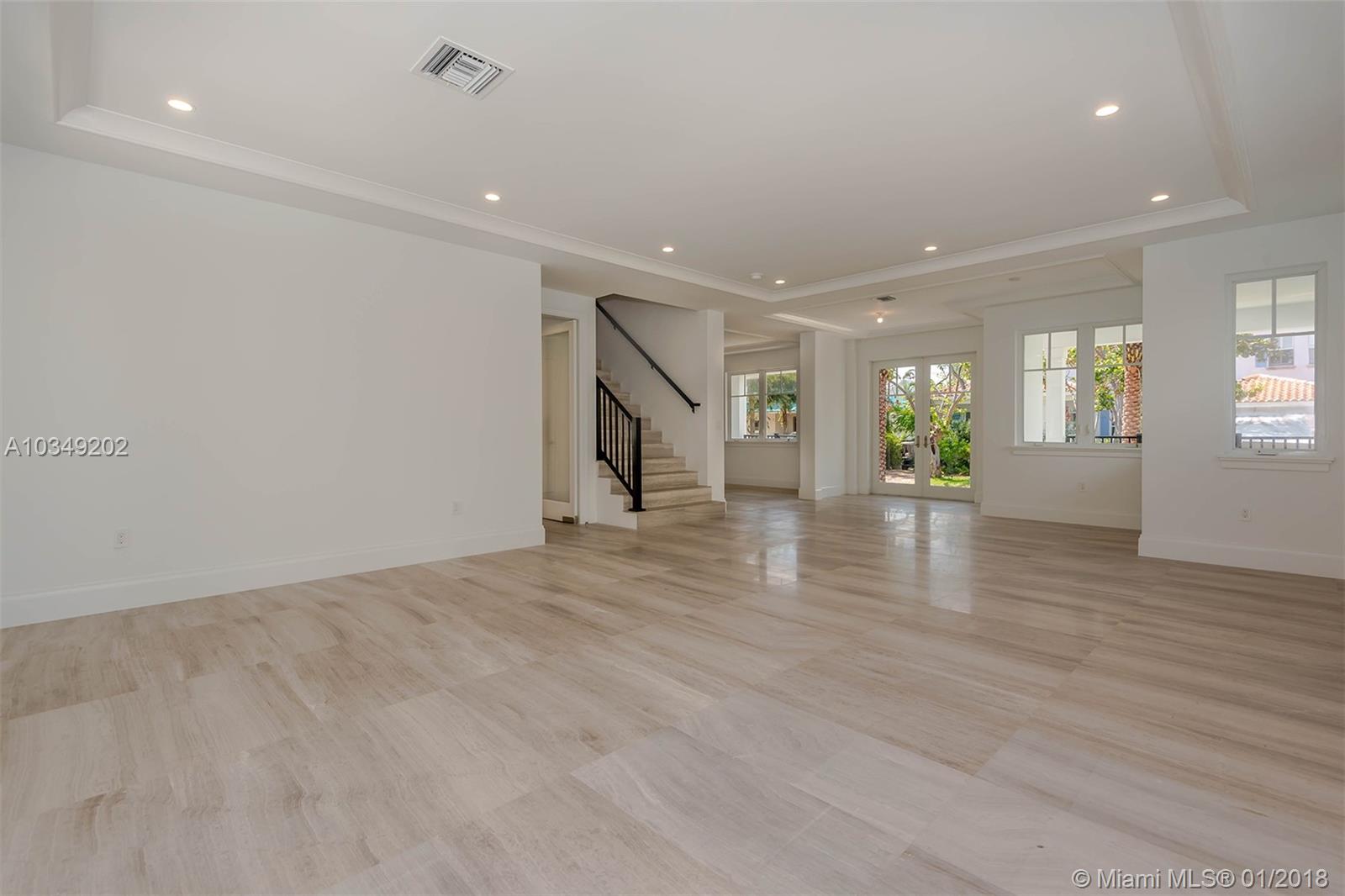 BRAND NEW HOME, JUST COMPLETED AND PRICED TO SELL!! 6 en-suite bedrooms with 7.5 baths. Five bedrooms on second level and each with ITS OWN balcony. Large "IMPACT" glass windows and doors throughout providing natural light further enhanced by 10 foot ceilings. Marble floors in all living areas and porcelain wood-style floors in bedrooms. The kitchen features white quartz counters, classic shaker cabinets and top of the line appliances. Stylish bathroom fixtures in all 7.5 baths and free standing tub in master with separate large shower. Stone pool deck with large pool, extensive patios and large terrace perfect for entertaining. Located on a quiet tree-lined street which is walking distance to Village parks, community center and gym, shops, schools and beach. Beach Club available.