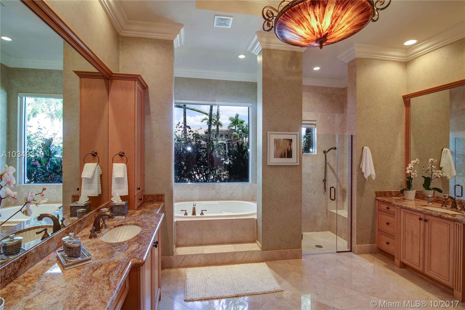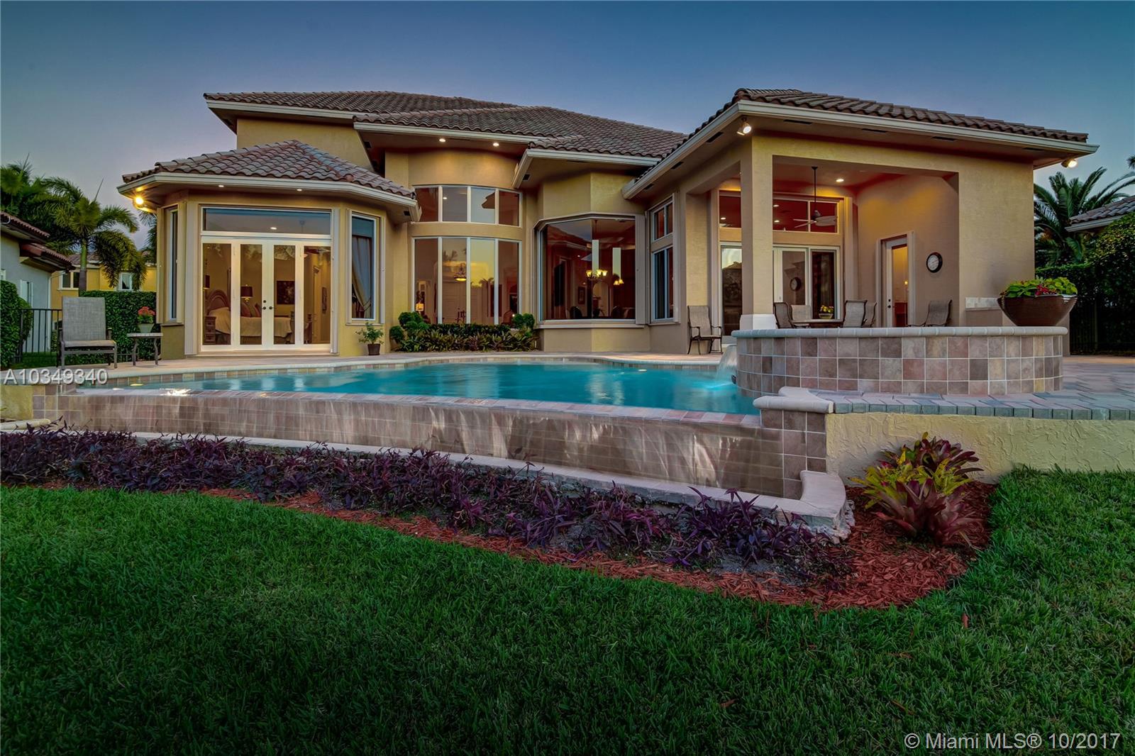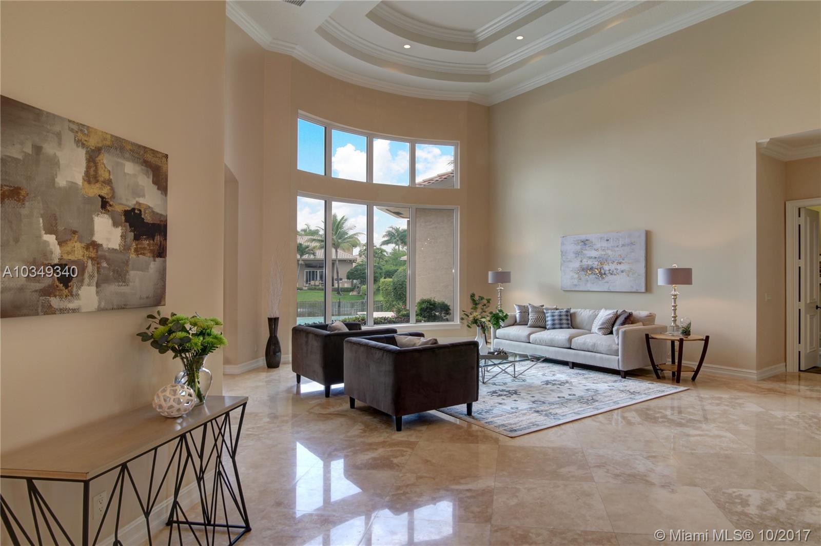 New price adjustment. Best priced 6bed./7.5 bath plus an office home! Stunning home features 18ft. walls of glass and flooded in natural light*Sitting on an oversized cul-de-sac homesite with water and fountain views*Features 24 in. marble flrs, heated infinity pool &spa,impact windows, summer kitchen, automatic generator, all 7.5 bths. Marble and wood finish*1st. floor master, guest suite, and office*2nd. Flr. w/4 large ensuite bdrms.&playroom/den*The true gourmet will adore the island and breakfast bar kitchen with custom wood cabinets, granite counters and high end s.s. appliances, plus pantry. circular driveway and lush landscaping *Come fall in love with a true turnkey home!!!