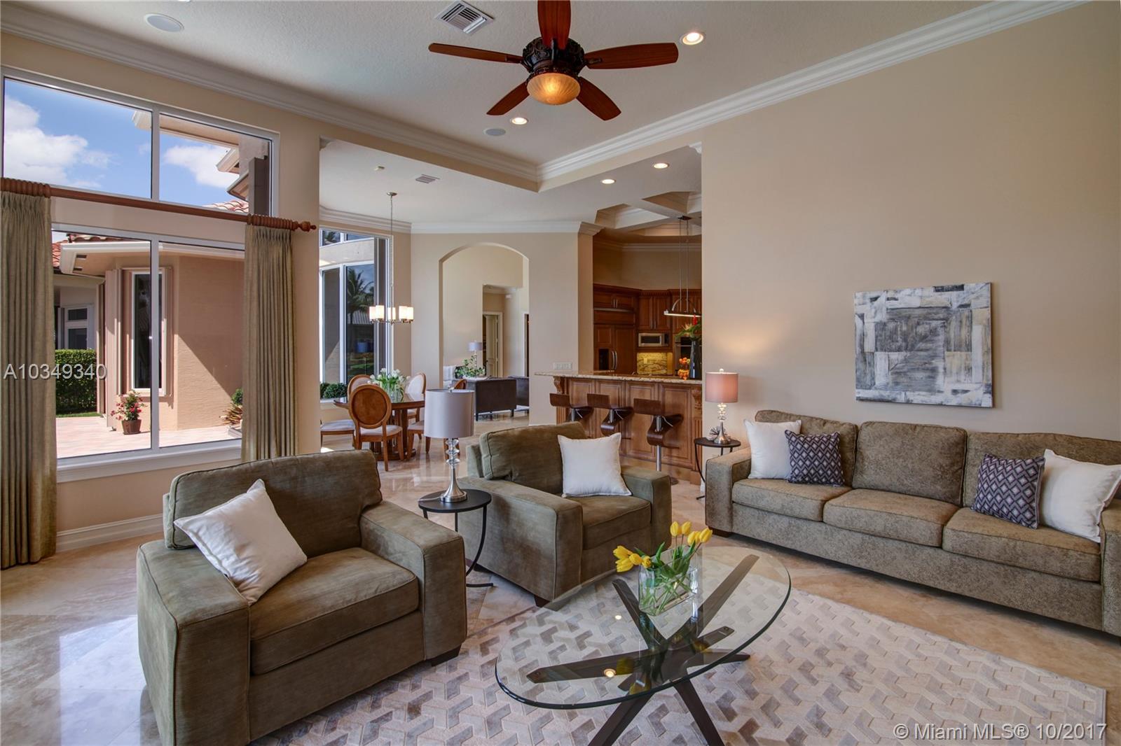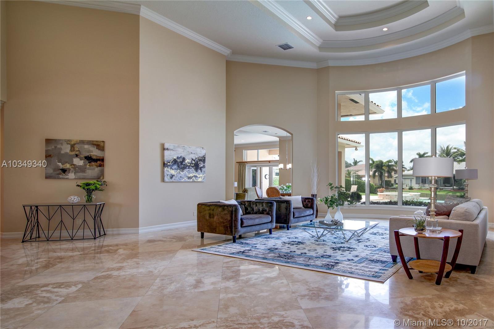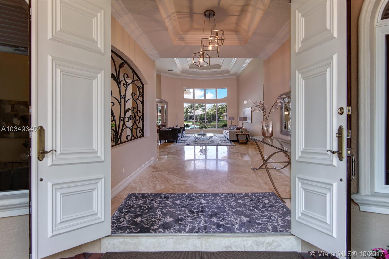 New price adjustment. Best priced 6bed./7.5 bath plus an office home! Stunning home features 18ft. walls of glass and flooded in natural light*Sitting on an oversized cul-de-sac homesite with water and fountain views*Features 24 in. marble flrs, heated infinity pool &spa,impact windows, summer kitchen, automatic generator, all 7.5 bths. Marble and wood finish*1st. floor master, guest suite, and office*2nd. Flr. w/4 large ensuite bdrms.&playroom/den*The true gourmet will adore the island and breakfast bar kitchen with custom wood cabinets, granite counters and high end s.s. appliances, plus pantry. circular driveway and lush landscaping *Come fall in love with a true turnkey home!!!