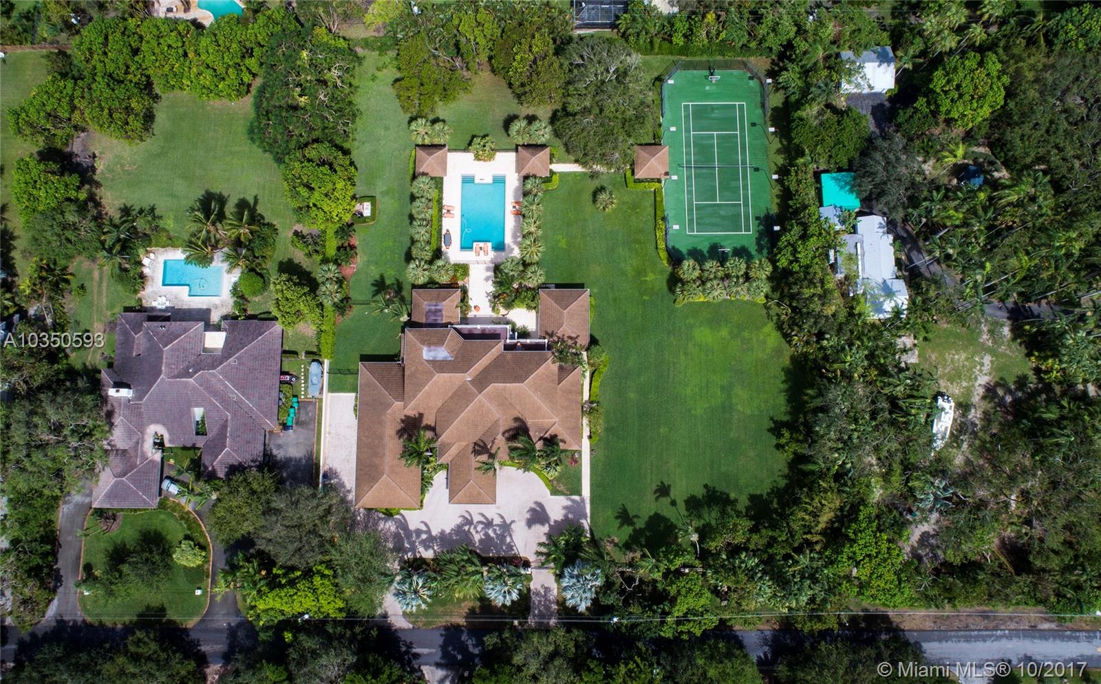 Located in the heart of Pinecrest, this showcase estate is situated on two acres of land with 7,000 sqft of luxurious appointments in an A+ rated school district. Offering 7 bedrooms, 7.5 baths, and a 4-car garage, this beauty is protected by new high impact glass windows, alarm system, gated entry, and cameras throughout. Grand entrance features impressive 30ft ceilings, staircase, and hard wood floors throughout. Dream chef’s kitchen outfitted with SubZero and gas range. Master suite boasts oversized spa-like shower complete with his and her walk-in closets. Expansive spaces perfect for entertaining including billiard room, theater/media room, resort-style pool with jacuzzi, gazebo, staff quarters/guest suite, and professional size illuminated basketball and tennis courts.