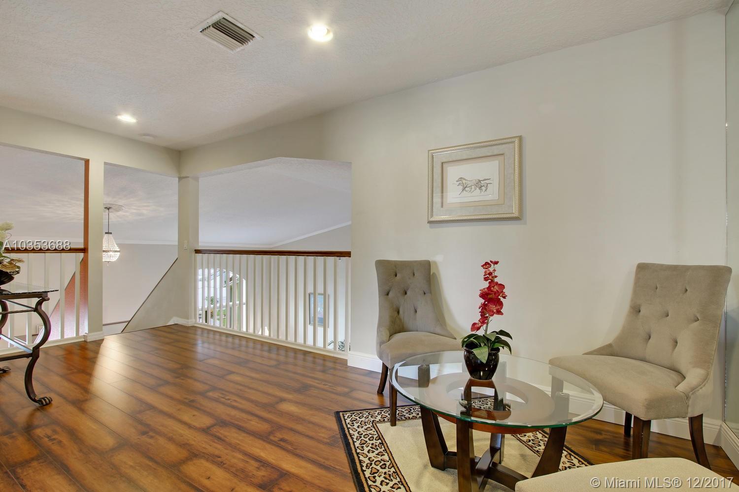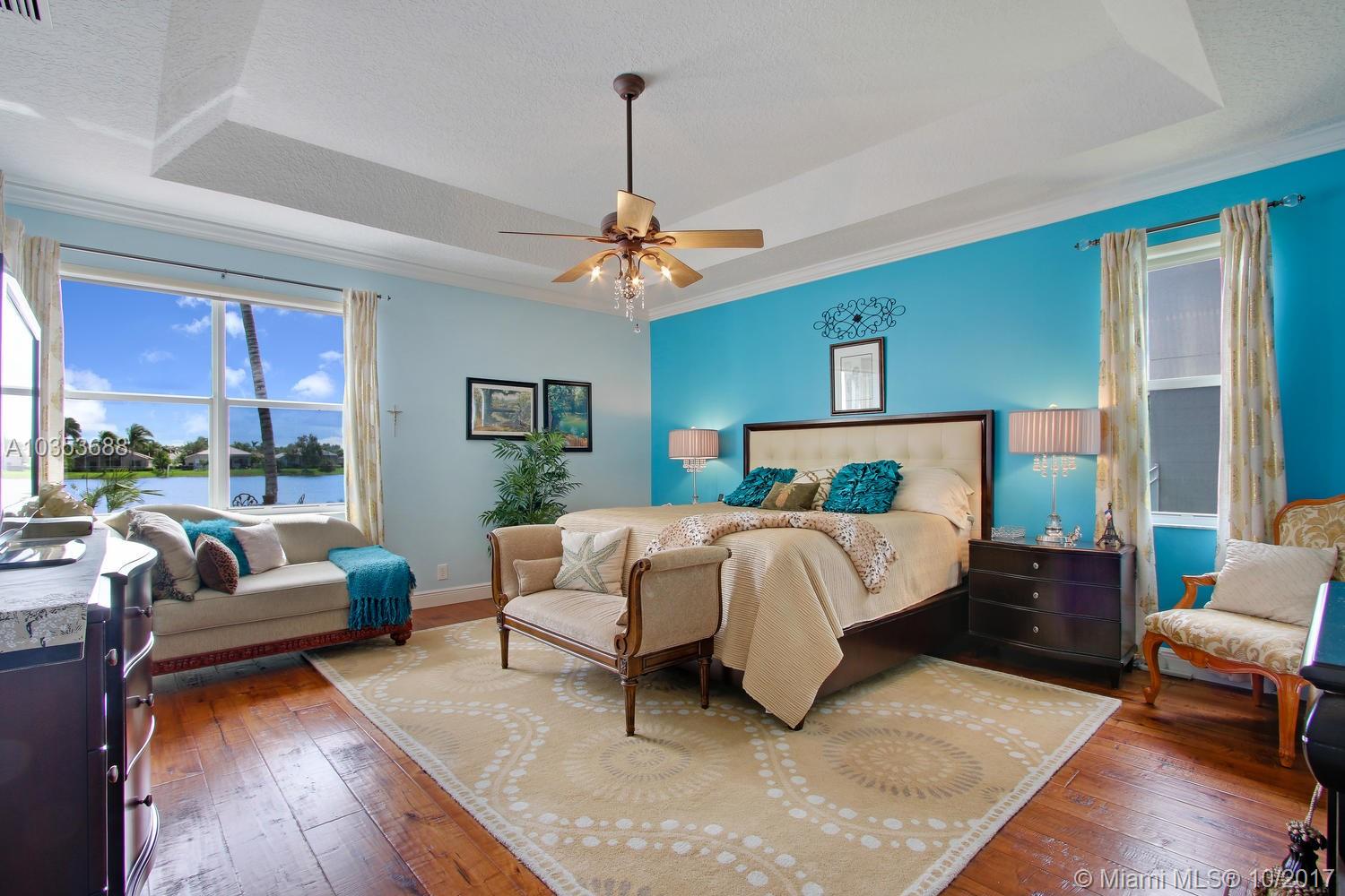 Come tour this elegantly updated 5 bedroom 3.5 bath waterfront home in Pembroke Falls! Home is fully equipped with hurricane shutters, pool, screened patio, cabana bath, downstairs master and 3 car garage. The sweeping windows provide ample light to showcase the massive formal living room and dining room, overseen by an airy loft. The kitchen is open to the family room overlooking the gorgeous water view and features wood cabinetry, granite, double oven and gas stove. Don’t miss this excellent opportunity!!
