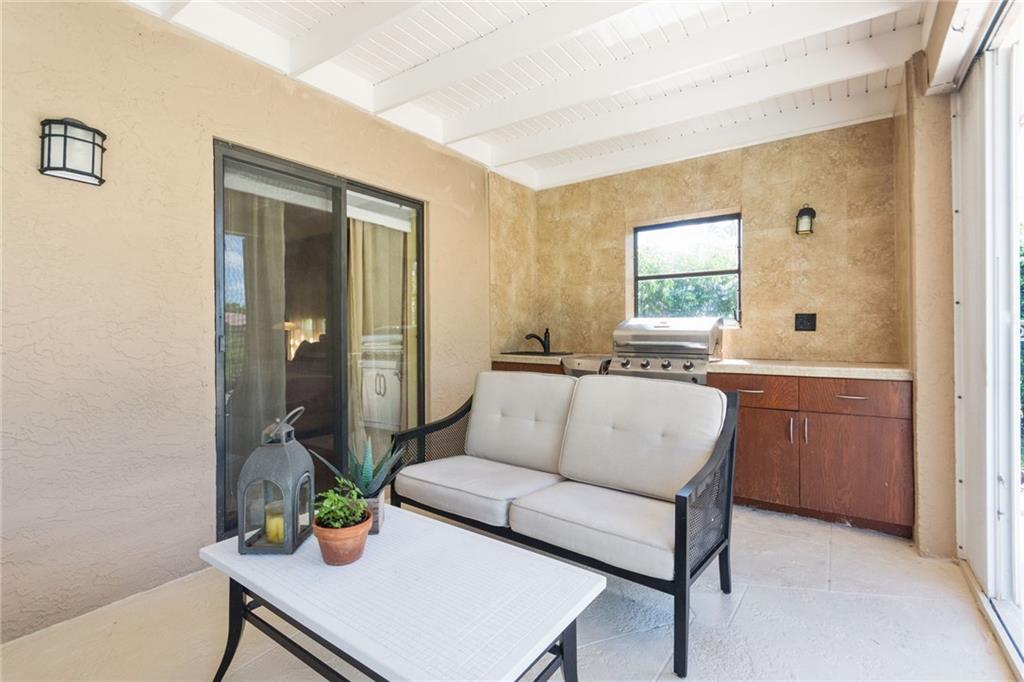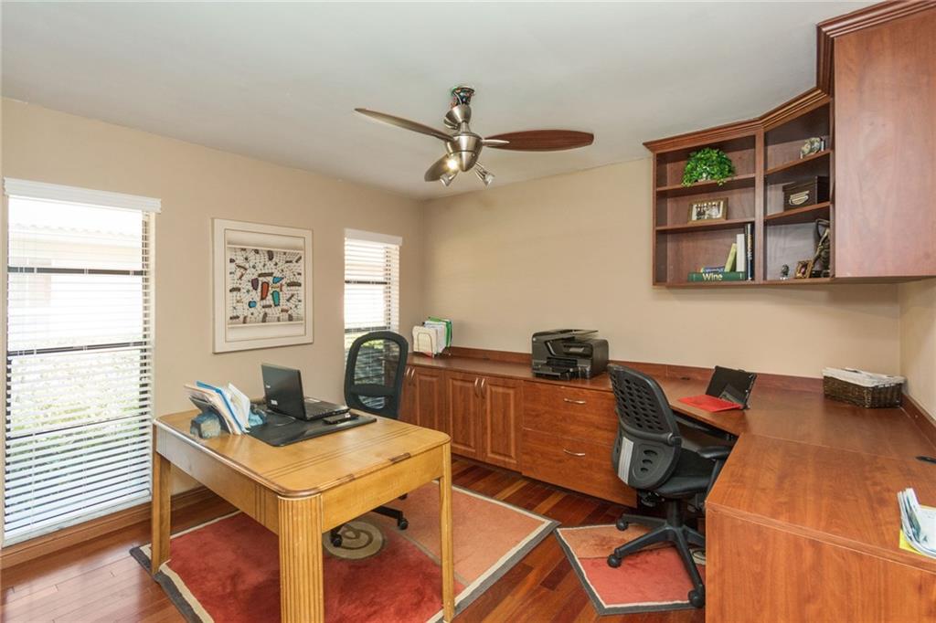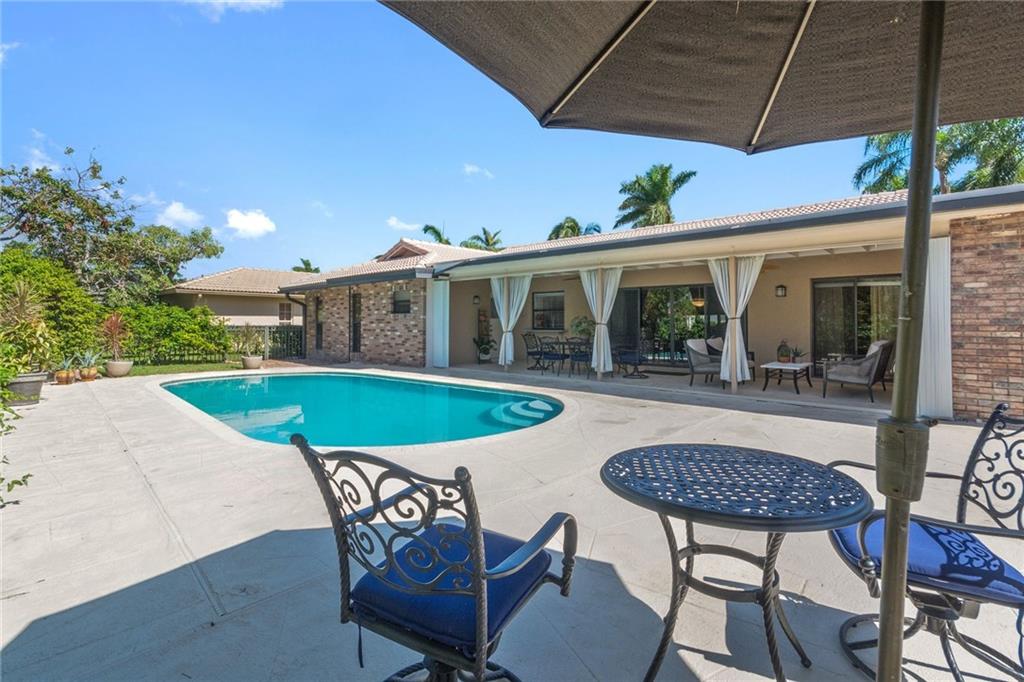 NO MEMBERSHIP REQUIRED! Beautiful golf course view from the moment you walk through the door with a bright and airy feel to the entire home. Remodeled four bedroom 3 bath home with open concept living space and private lush backyard with pool. White Shaker kitchen cabinets with stainless steel appliances and quartz countertops make a stunning statement for the discerning buyer. Marble bathrooms and Brazilian cherry wood floors and special moldings add to the elegance of this home. Built-in home office.