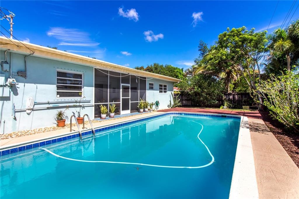 One of the most architecturally pleasing & unique homes in popular Riverland Village. Many design features inc vaulted ceilings, high windows for a light & sunny home. See your pool from the minute you the enter the residence through extra large double sliders. True dining room. Two brand new and fully renovated luxurious bathrooms. Polished Terrazzo floors. Updated Kitchen. Large yard & huge sparkling pool. Fully fenced/private yard. Close to downtown Fort Lauderdale & beaches. much more.