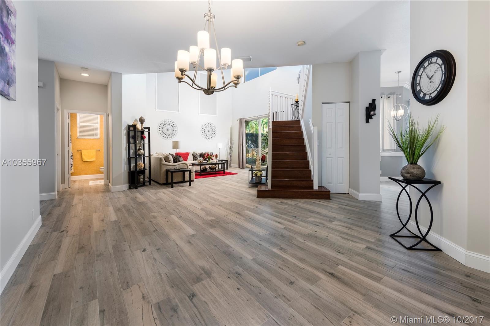 Gorgeous, 6 Bedroom, 4 bathroom Estate home in the gated community of Harborside Estates in Pembroke Pines. Open floor plan with large living and family room areas. Home Boast 22Ft ceilings in the living room. Sought after floor plan with one full bedroom and bathroom downstairs perfect for an office or in-laws. Upgrades include new Samsung stainless steel appliances, Carrera Quartz countertops, recessed lighting throughout the first floor (all LED) and wood grain porcelain tile in common living areas and kitchen. Perfect home for entertaining. Low monthly dues and great schools.