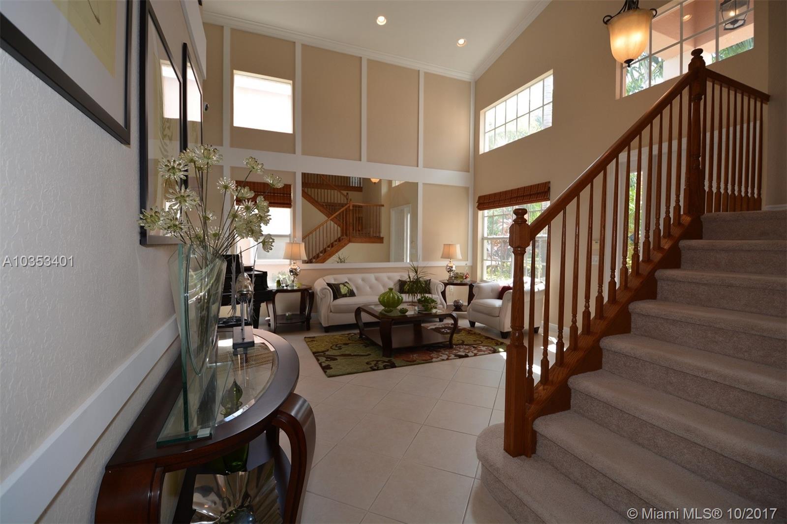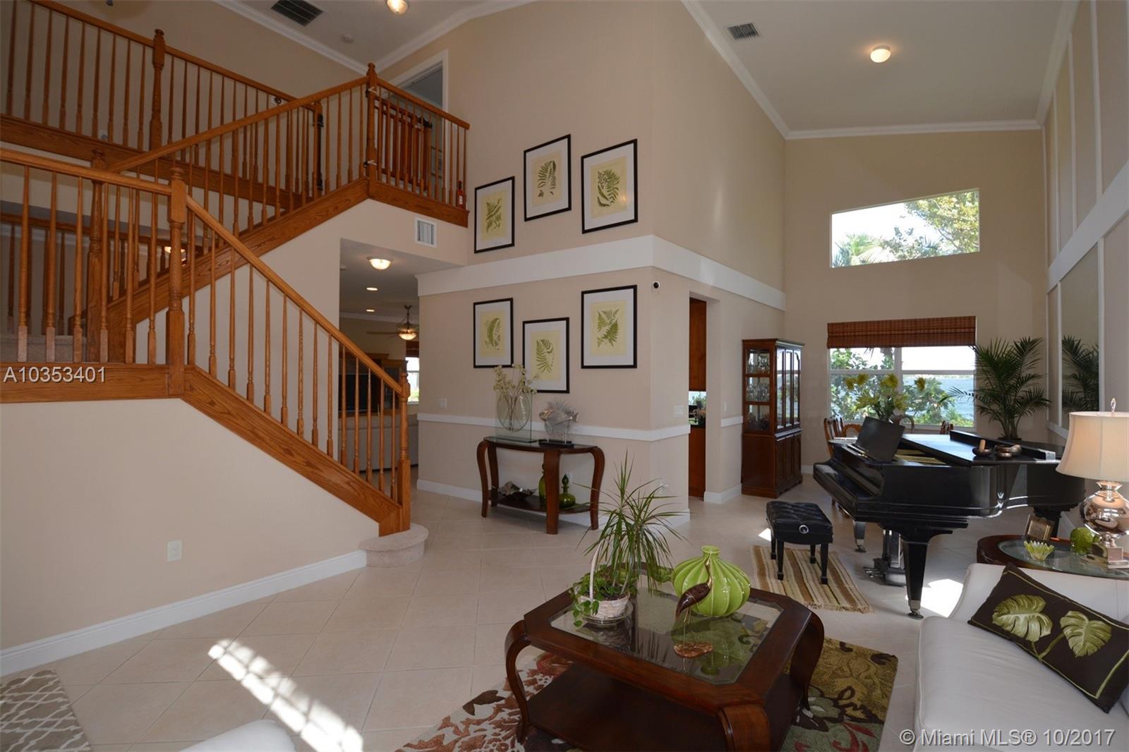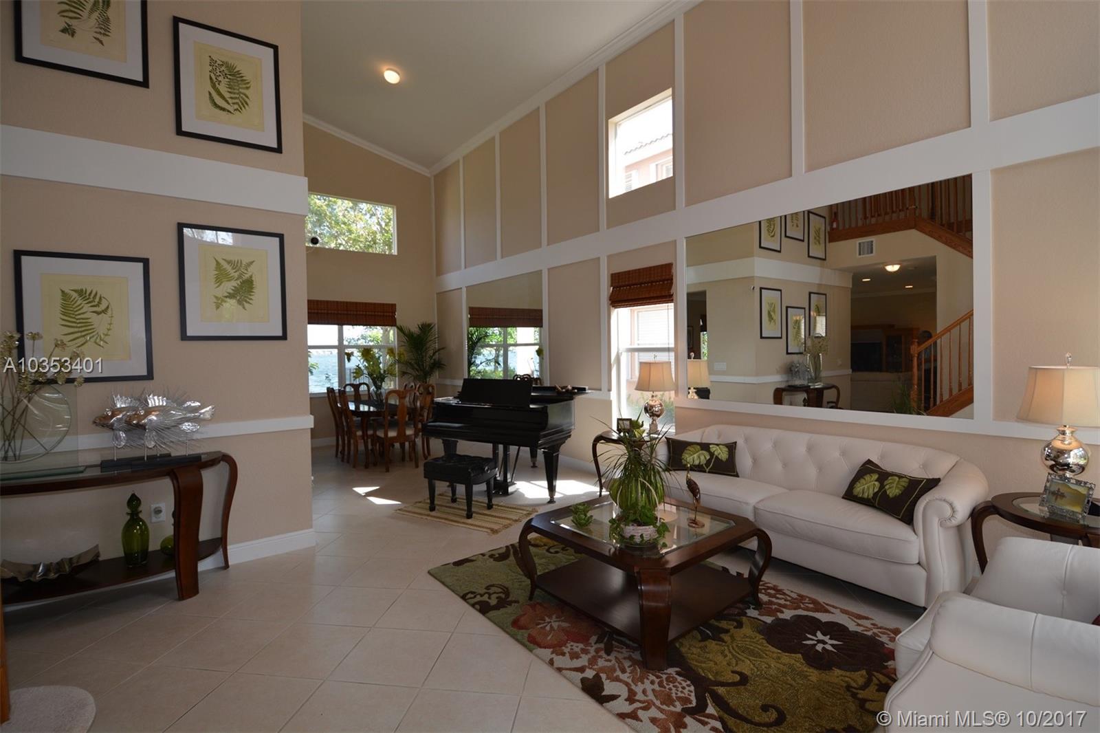 Impeccable is an understatement. Beautiful 2 story home w/Premium lakefront lot in highly sought after Sunset Falls Community. It features breathtaking panoramic Lake front views over a mile long. Open floor plan encompasses five spacious bedrooms with 3 full updated bathrooms & kitchen. Bedroom & full bathroom downstairs. The vaulted ceilings add to the expansive elegant feel. Balcony off the Master Bdrm great to enjoy entrancing sunsets and sunrises unique to this premium oversize lot. Patio ideal for entertainment or evening dinning al fresco. This home has been meticulously taken cared of. High tech security system. Brand new a/c handler & a/c unit. Crown molding and baseboard throughout. beautiful mirrors and wall decor Victorian style. Numerous upgrades. Great house!