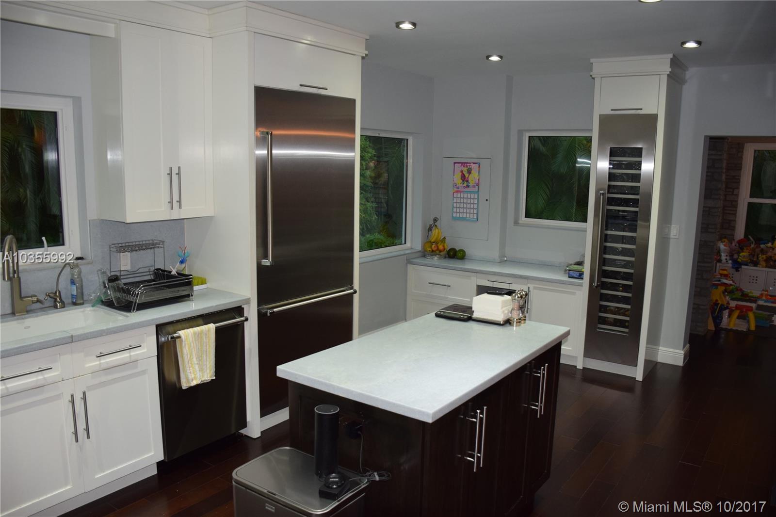 This fabulous South Gables home completely renovated with high-end custom details sits on a 10,000 sf. ft lot. The property features a spacious open floor plan perfect for entertaining with a gourmet kitchen including Thermador stainless steel appliances, quartz light grey countertops, wood cabinetry, a built-out pantry, a large wine cooler and a breakfast area overlooking the garden. Also, this home offers hurricane impact windows & doors, hardwood floors, Plantation shutters, built-in walking closets, modern remodeled bathrooms, living room with a decorative fireplace and a large family room with custom built-in cabinets and shelves. Contact listing agent to schedule a time to show.
