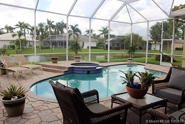Beautiful designer home; 200+ ft lake view; 34X17 ft pool + spa; family room converts to home theater electronically; 100 inch projection screen; kitchen granite counters & backsplashes; wood cabinets throughout; oversized rooms; 18X18 tile in all living areas and baths; hurricane protection includes red iron reinforcement of roof on both sides of house, foam installation of roof tiles to resist hurricane force winds, accordion shutters, and hurricane rated garage doors; New WH, Newer A/C; Best schools.
