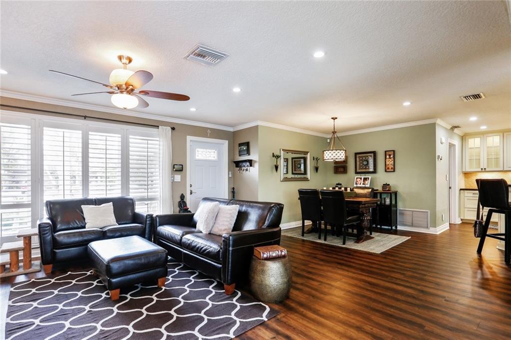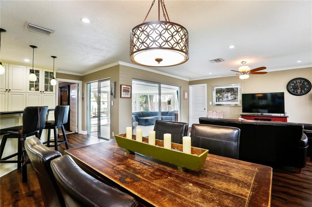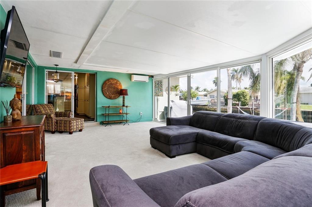 Charming 2/2 with tons of upgrades.Custom kitchen with Jenn-Air appliances with double ovens.All impact windows. A bonus room of over 400 sq ft. All New:Hardwood floors, Master bath, Custom Closets, Plantation shutters, Mitsubishi air conditioning in family room, Impact sliders overlooking pool and canal, gas tank less water heater, Pavers in front & back. LED cams throughout, LED landscaping lights, sprinkler system, crown molding, painted interior, exterior, interior doors, and utility shed.