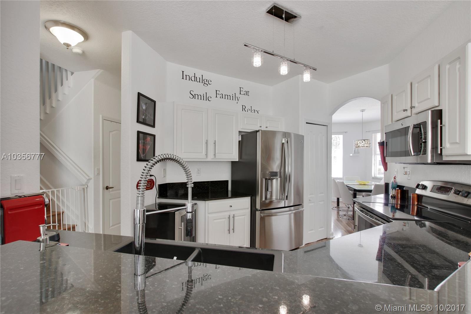 Homes like this do not come on the market often! This beautifully updated 4/3 corner home on the water is immaculately maintained. 3/2 upstairs, 1 bed 1 bath on first floor & a spotless 2 car garage. Formal living and dining rooms, upgraded kitchen w/granite countertops and stainless steel appliances overlooking a very spacious family room that leads out to a nice ample patio. High volume ceilings allows for lots of natural light to flow, setting a warm inviting feeling. Second floor features a Jack & Jill bathroom, separate laundry room and a double door entrance to a grand Master bedroom w/walk-in closets and bathroom w/tub and shower. Freshly painted, accordion shutters throughout & just a stones throw away from the new Doral Legacy Park & shops. A true beauty...a must see!
