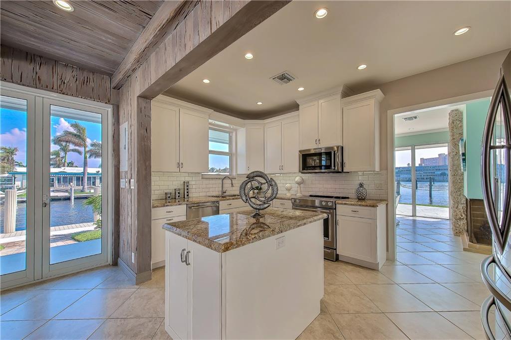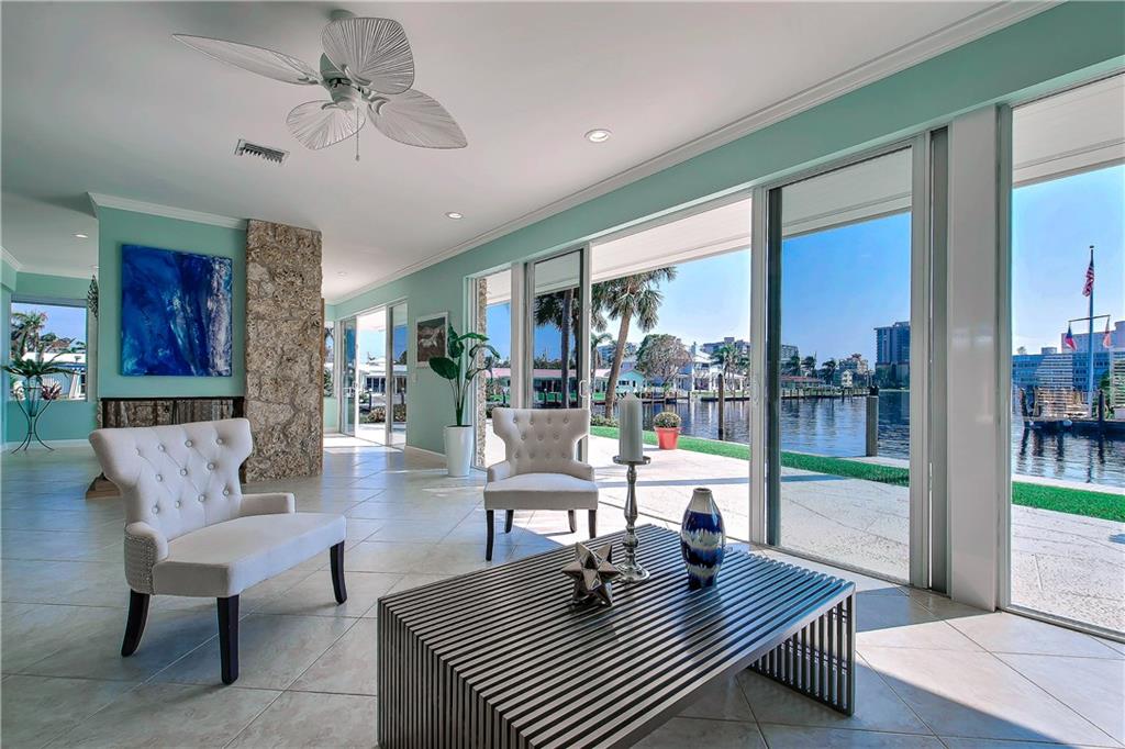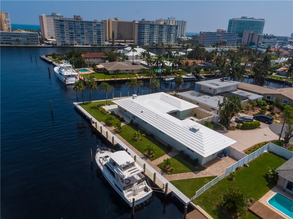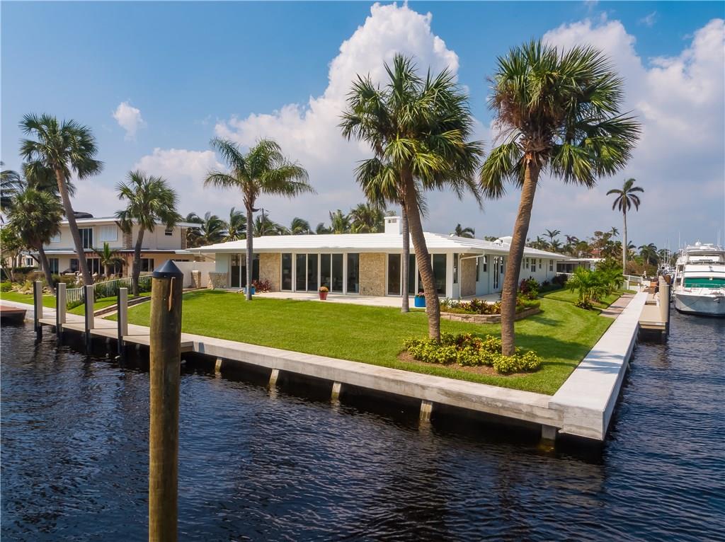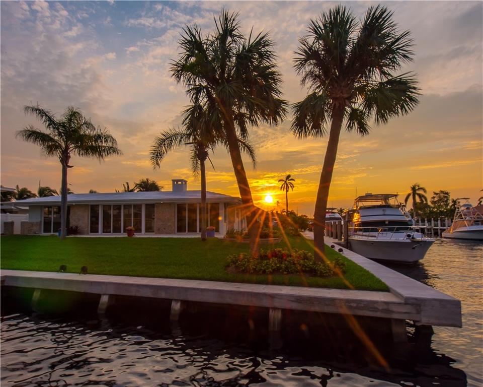 Indulge in the tropical south Florida lifestyle with this yachtsmen’s paradise. Newly renovated point lot in the most desirable neighborhood in Pompano Beach boasting 263' of waterfrontage just off main intra-coastal for protected dockage. Newly updated seawall and 3 new deep water docks with dolphins for mooring & private entrances for easy access of yacht services and fueling. Spectacular water views, gourmet kitchen with stainless steel appliances and granite countertops. 10 minutes to Hillsboro Inlet