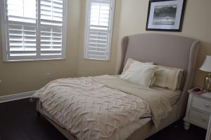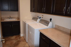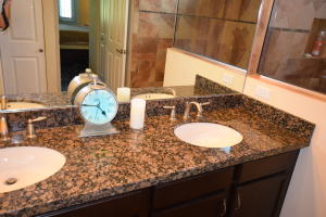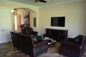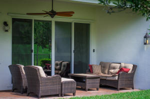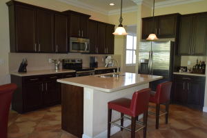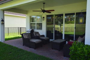 Beautiful 3/2 home. $10K in builder upgrades including 18'' diagonal tile, laminate wood flooring in bedrooms, espresso kitchen cabinets, quartz countertops, built out laundry room with laundry tub, granite countertops in Master Bath, upgrade from den to 3rd bedroom (property records show it as 2BR). Later upgrades include plantation shutters throughout home, built-in 5-speaker surround sound system, 8'' crown molding, ceiling fans, pendant lighting, and fenced yard. Property backs up to berm, so yard is nice and private. Located just before cul-de-sac so very light traffic. Neighborhood is a family's dream with sidewalks, amenities galore, and regular organized events. Community Clubhouse, Resort-style Pool, Spa, Cabanas, Tennis, Basketball, Volleyball, Playground, Billiards, and more