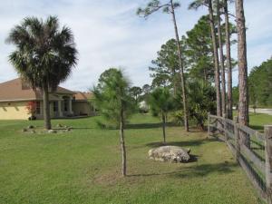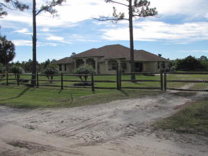 Beautiful CBS 4/3 home with den/office on 2.19 acre landscaped corner lot surrounded by a reinforced split rail fence including matching double gate, new hydrogen peroxide water treatment system, specialized drainage system on a high and dry lot - #1 fill though out property, dual a/c units, crown molding/chair rail, tray ceilings, wood floors, granite kitchen with updated appliances, double oven. Master bedroom includes his/hers oversize walk in closets and double French doors leading to large screened patio . Master bath has double shower and roman tub. Newer hip roof. Close to I95 & tpke. Walking distance to A rated elementary school, minutes to shopping centers.
