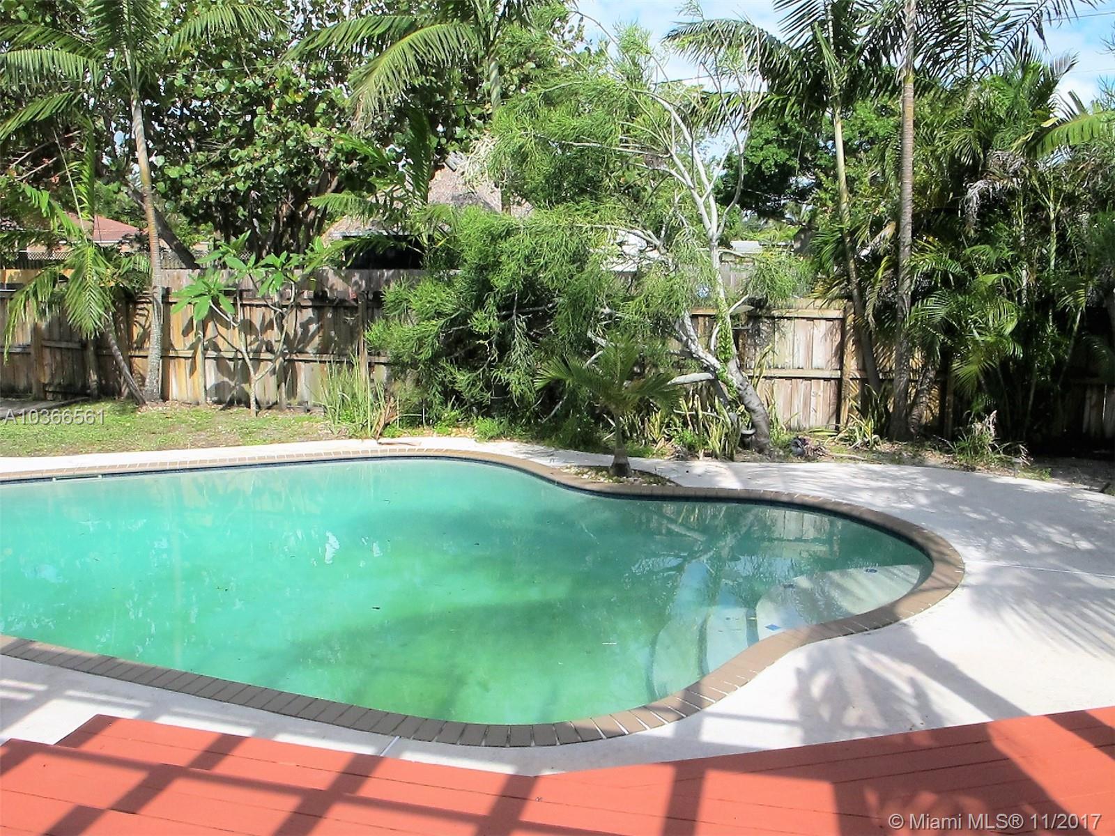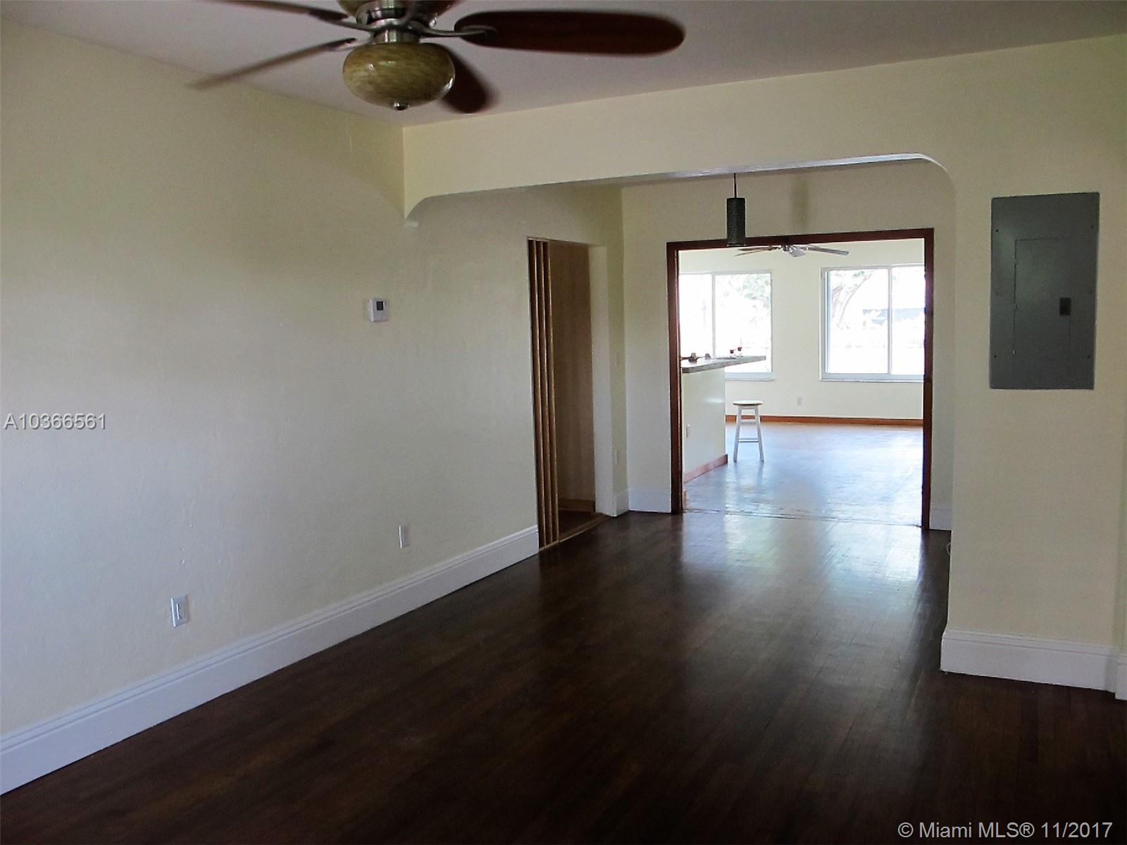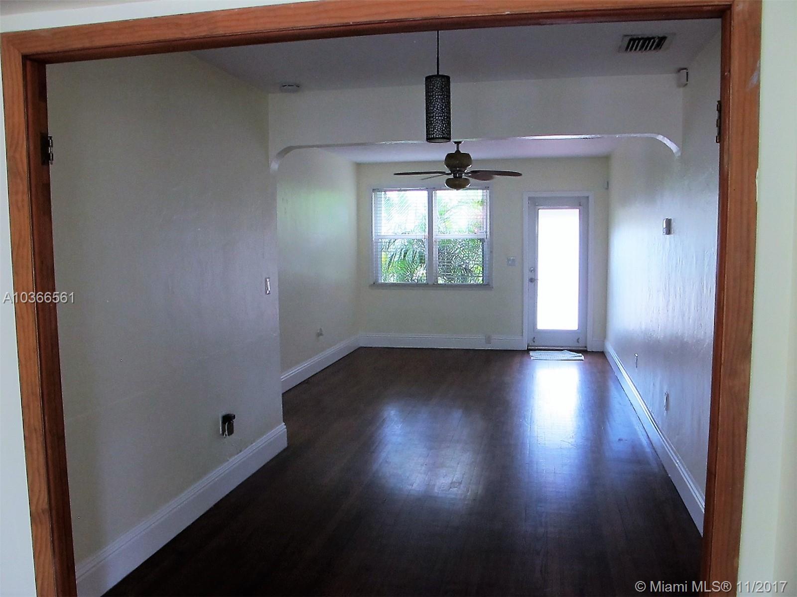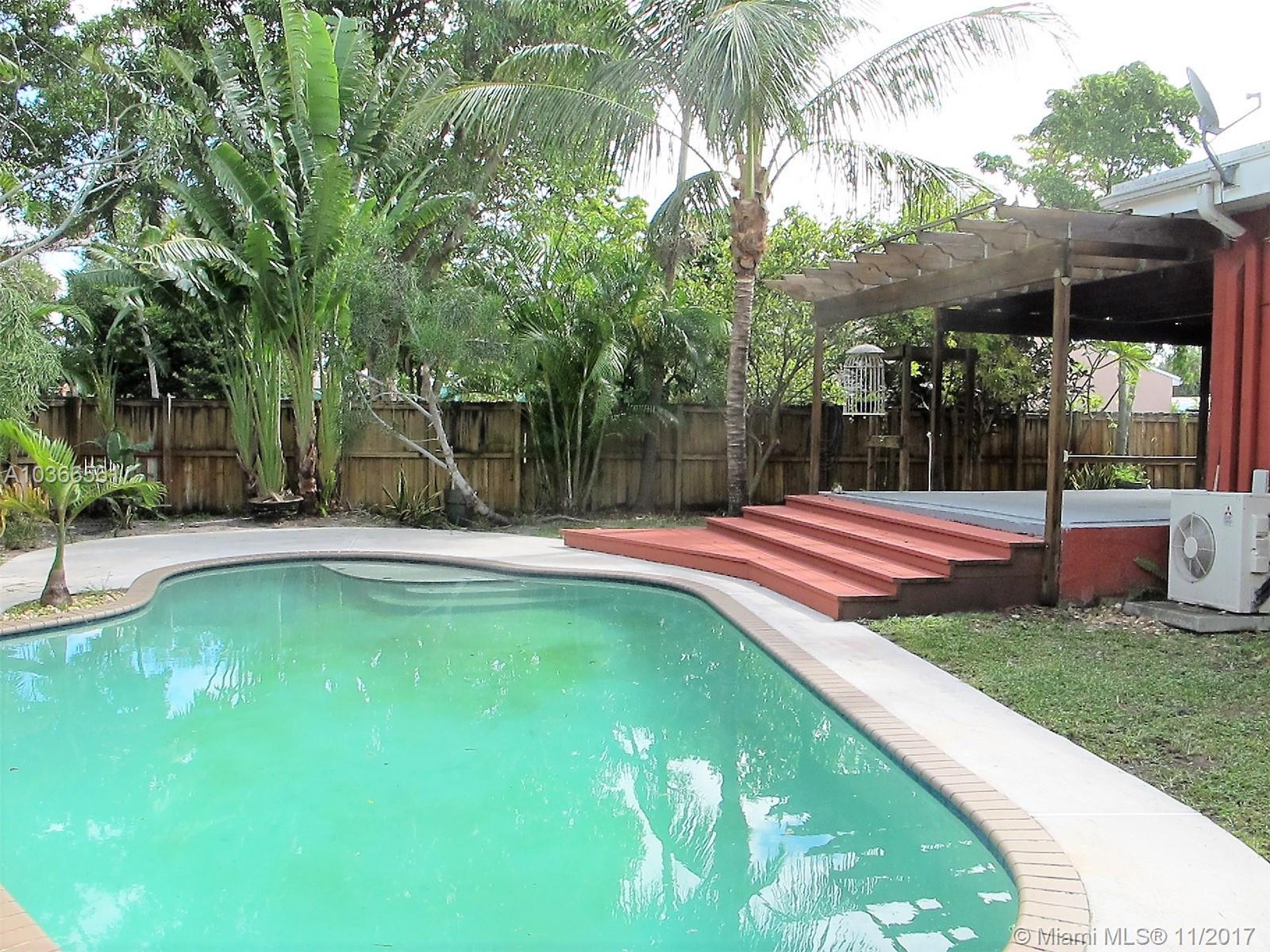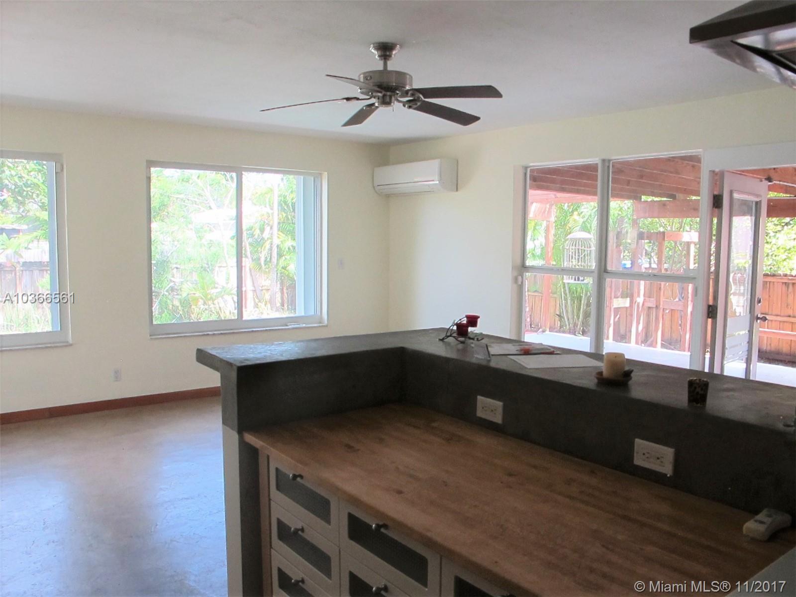 Open bright & spacious historic charm. Freshly painted. Family room which overlooks a gorgeous pool and huge yard. Property is privacy fenced . There are 2 outdoor patios with decorative pergolas, outdoor shower, tropical backyard with palm and banana, coconut trees and other exotic foliage. Hardwood floors, polished concrete floors, Hurricane protected , impact doors. New metal roof guaranteed for 100 years, new a/c. Priced to sell. Master bedroom off of hallway that also leads to side entrance of home for potential in-laws/guests or rental. Roughed in plumbing already in place in larger outdoor patio for additional large bedroom and bath.