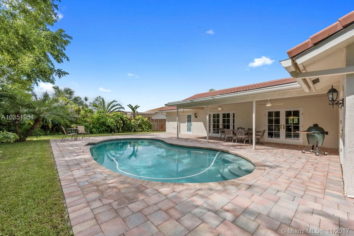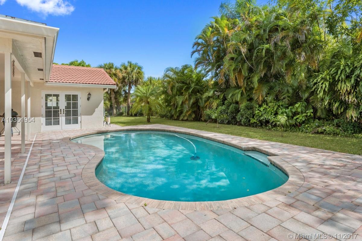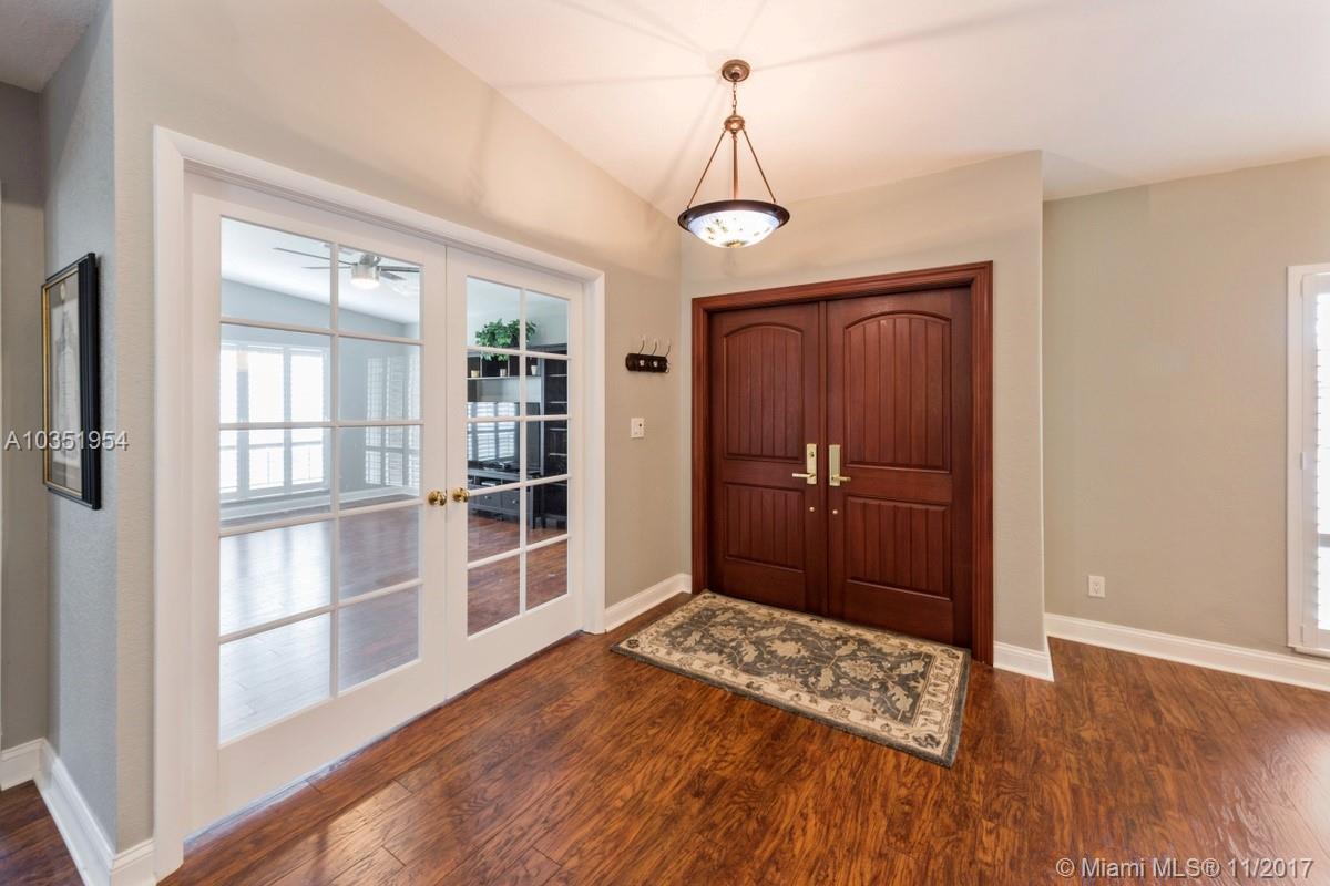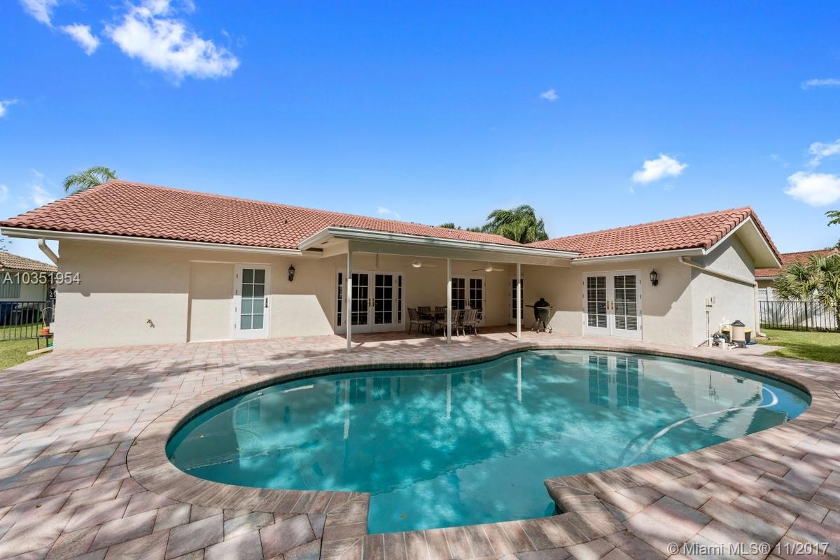 Beautifully appointed and inviting 4 Bedroom 2.5 Bath home with a split bedroom plan and a serene and relaxing open pool and patio to enjoy. This home boasts a stunning double door SIW impact colonial front door before entering home. You will love the new Pergo dark wood laminate floors and oversized family room, den or office with French doors for privacy. Features include: new freshly painted interior, remodeled custom cabinets, granite counters, snack bar, stainless steel appliances, double oven, plantation shutters, crown molding, knockdown walls and ceilings, all upgraded bathrooms, frameless glass shower in master bath, SIW impact windows and doors, Baldwin locks on all doors, paved driveway, walkway, patio, completely fenced yard with new rod fence on left side, roof 2005.