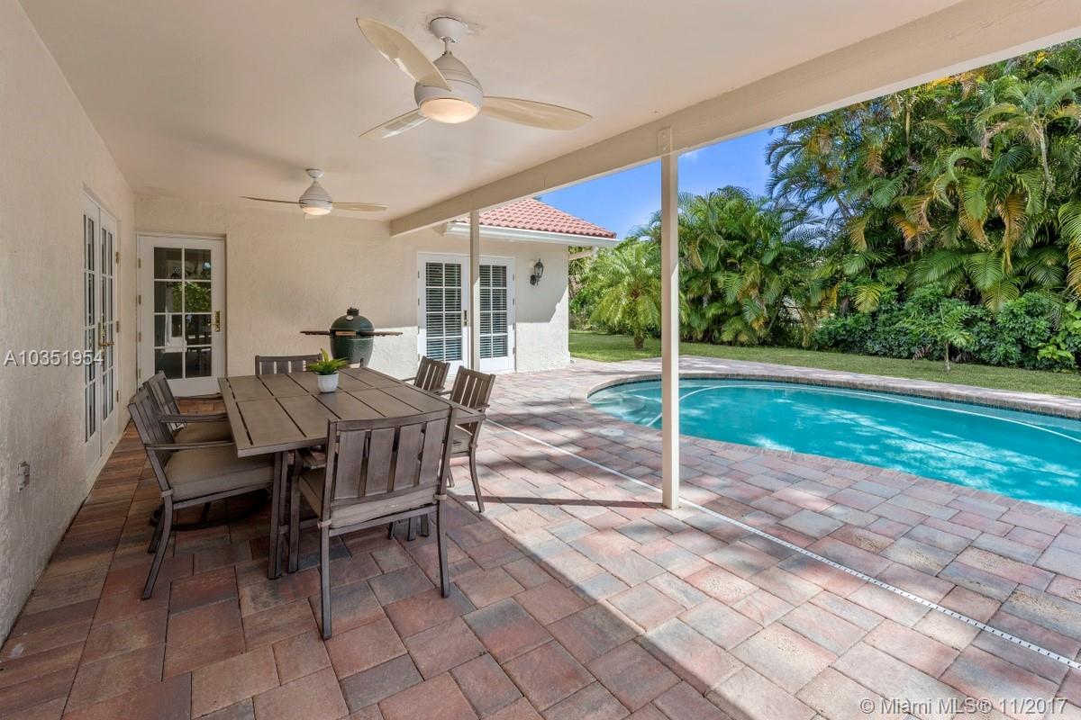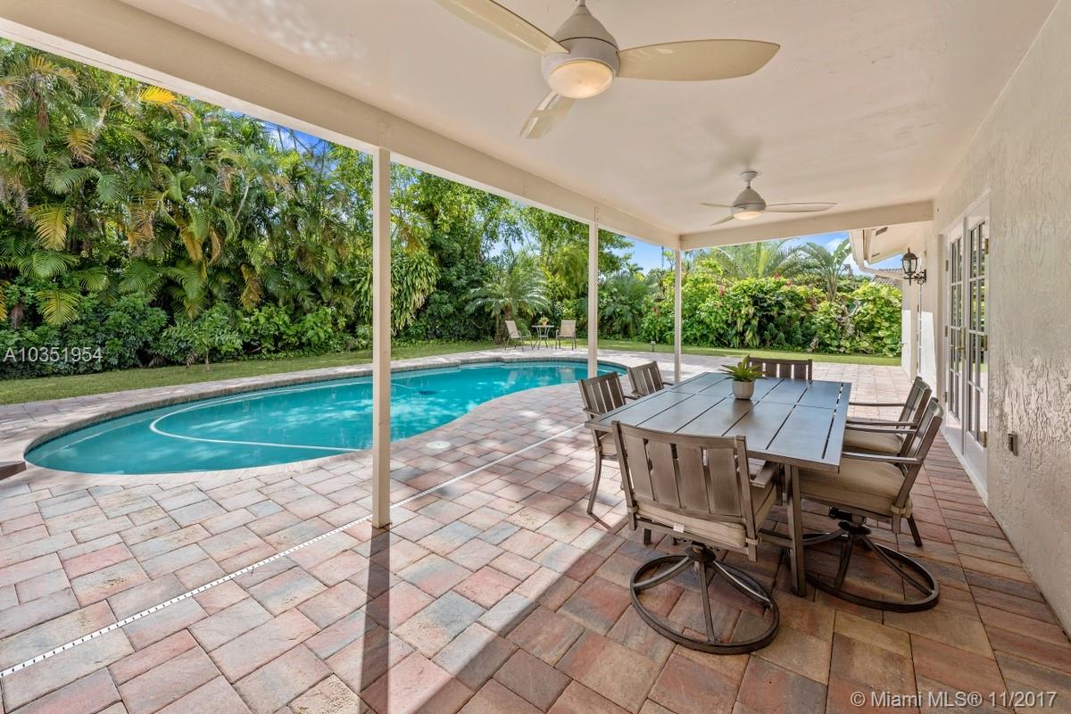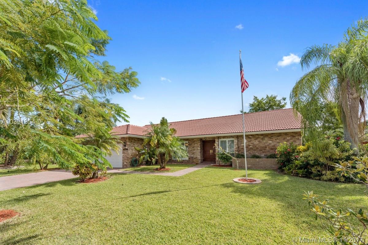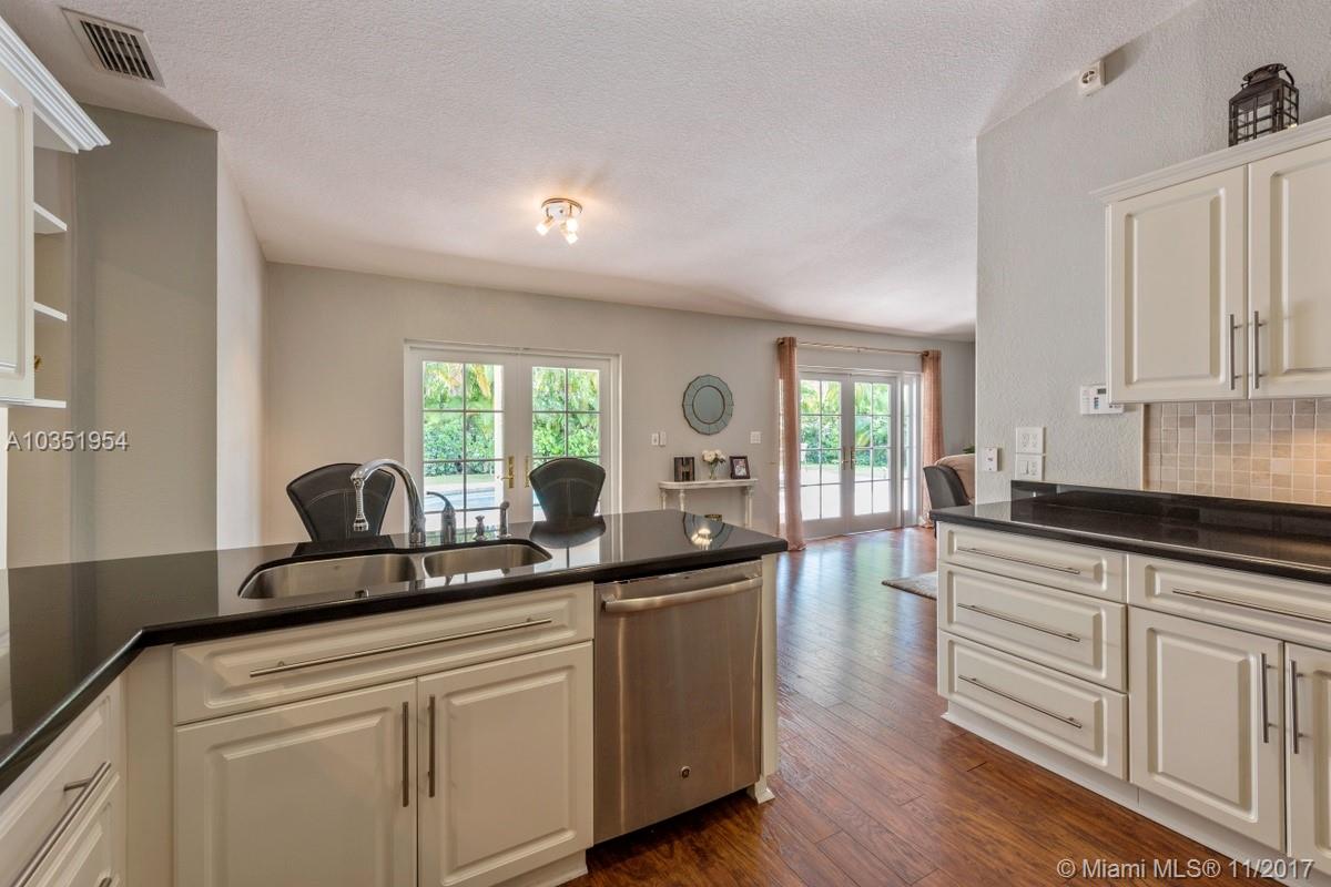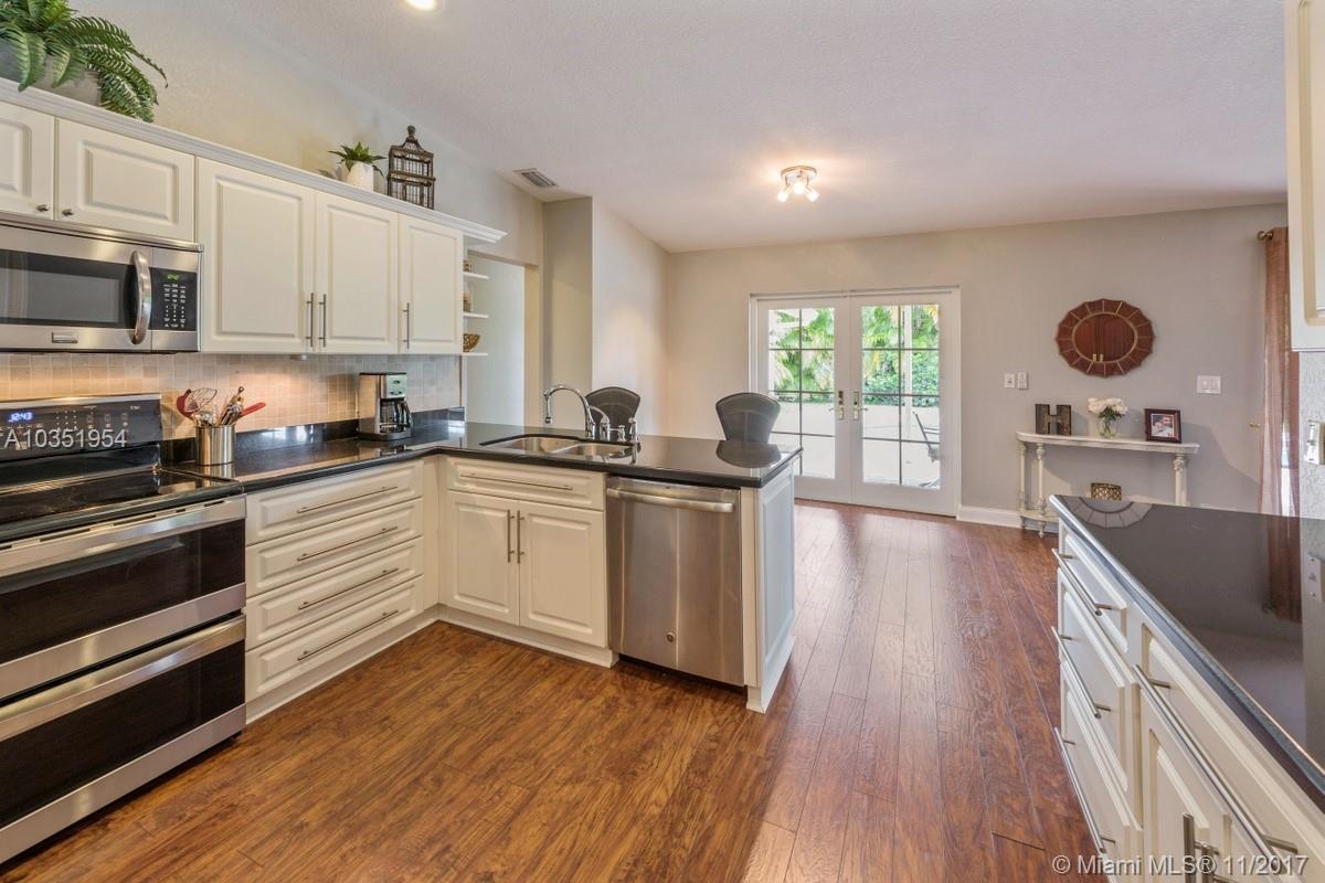 Beautifully appointed and inviting 4 Bedroom 2.5 Bath home with a split bedroom plan and a serene and relaxing open pool and patio to enjoy. This home boasts a stunning double door SIW impact colonial front door before entering home. You will love the new Pergo dark wood laminate floors and oversized family room, den or office with French doors for privacy. Features include: new freshly painted interior, remodeled custom cabinets, granite counters, snack bar, stainless steel appliances, double oven, plantation shutters, crown molding, knockdown walls and ceilings, all upgraded bathrooms, frameless glass shower in master bath, SIW impact windows and doors, Baldwin locks on all doors, paved driveway, walkway, patio, completely fenced yard with new rod fence on left side, roof 2005.