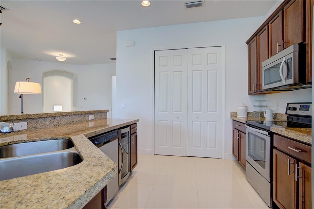 Gorgeous 3/2 +garage coach home in Cypress Pointe. 24" white porcelain tile and volume ceilings give this spacious home a clean, modern feel. The kitchen features upgrades like wood cabinetry, granite and stainless steel appliances with an open living space to the living and dining areas. The large, screened patio is the perfect place to enjoy quiet sunsets. A+ schools, fantastic community amenities, guard gated entry, fitness room, two community pools, kids playground and sports courts.