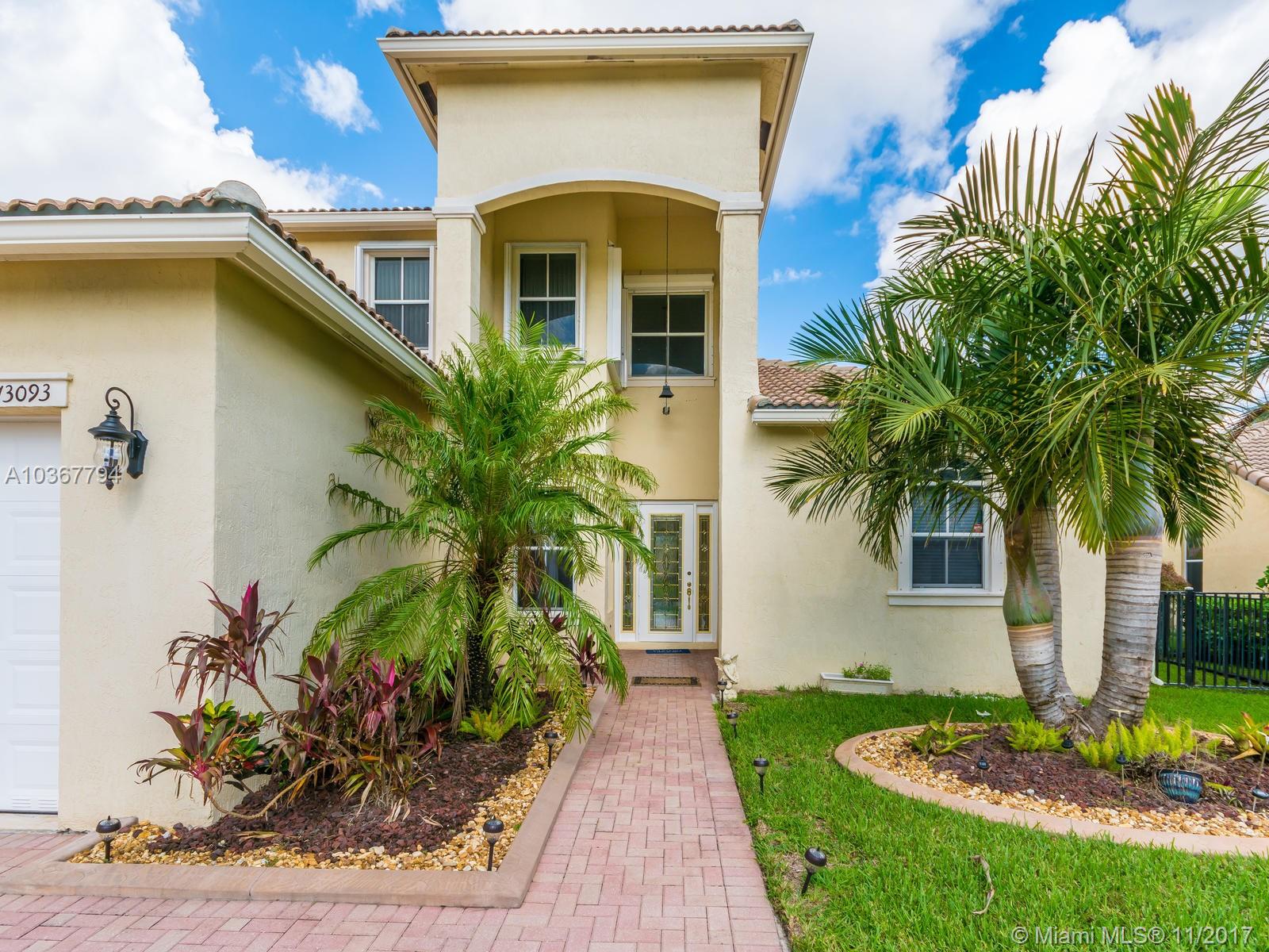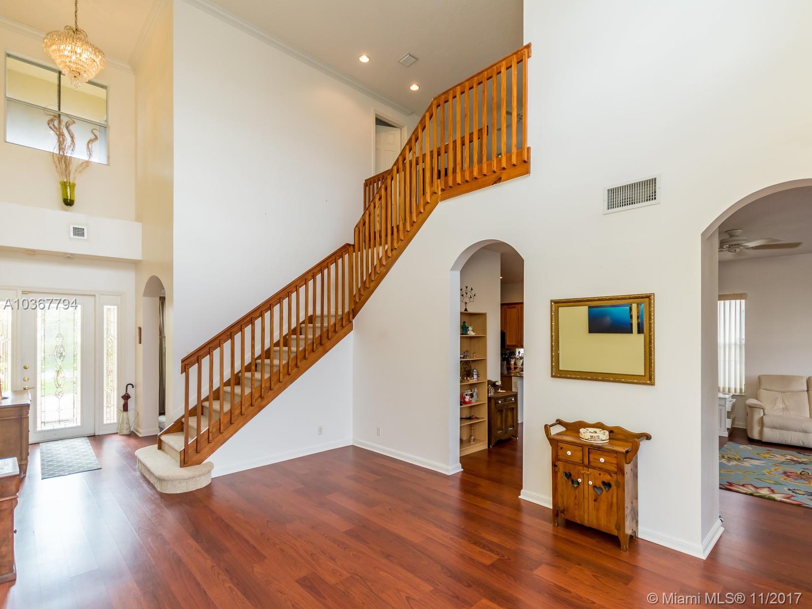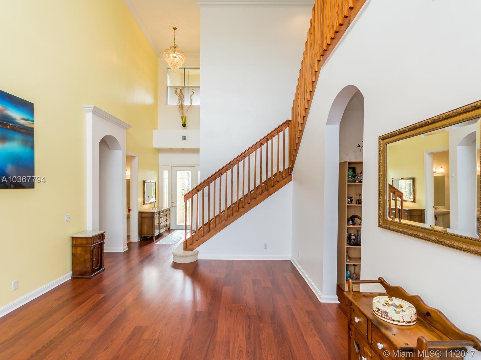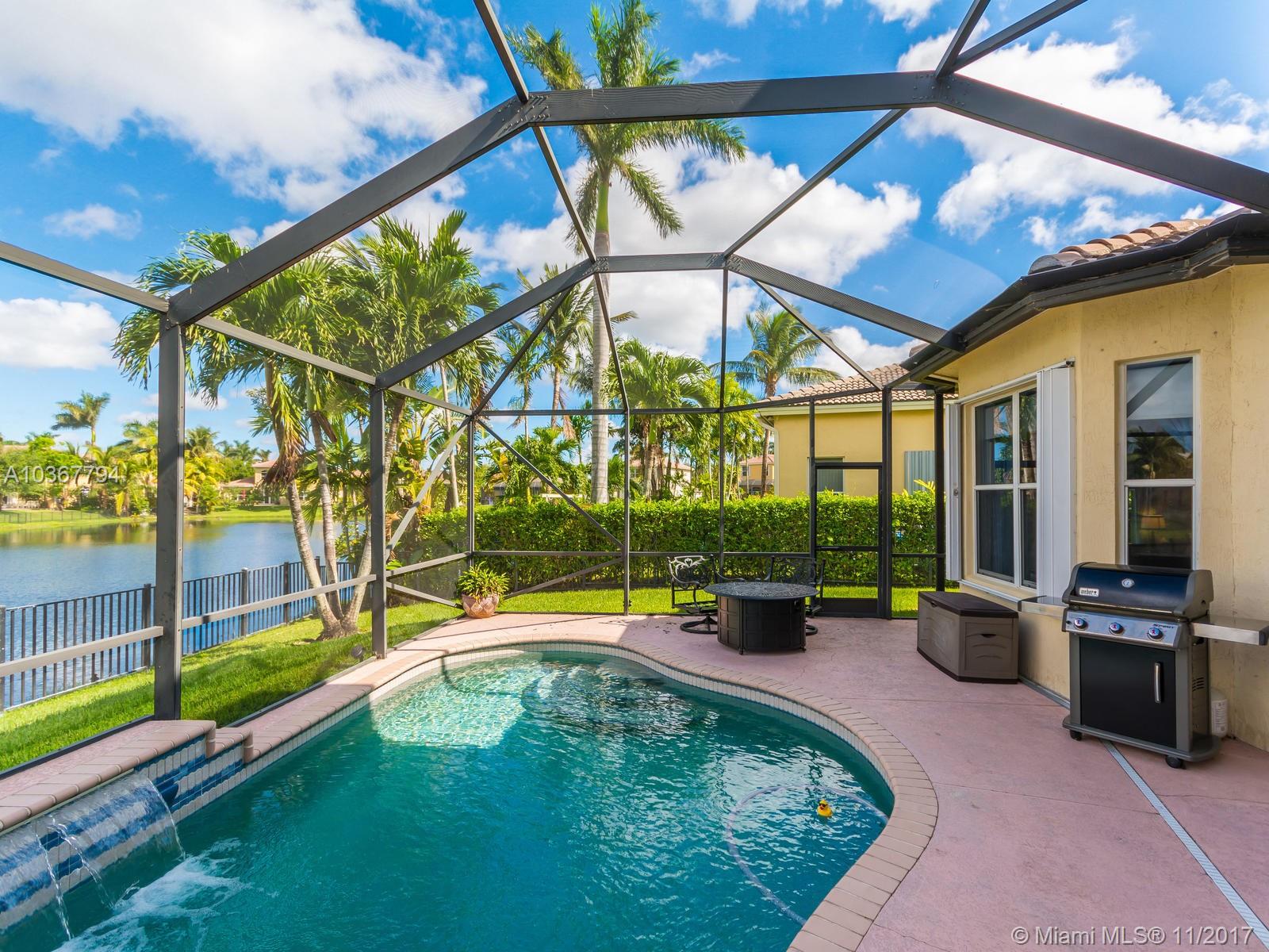 Magnificent home in a gated community! Enter through the lavishly landscaped front yard, large windows through out provide ample light in the massive living areas. Beautifully flowing floor plan & vaulted ceilings. Large Island kitchen in the center of the home, boasting wood cabinets, granite counters, new appliances & a butler's pantry. Most desirable model w/double master suites, one on each floor! Master bedroom includes a large sitting area & a grand bathroom suite w/walk-in closet. Separate laundry room & half bathroom conveniently located on the first floor. Fantastic backyard complete with a screened in pool on a wide lake, perfect place to entertain. Hurricane shutters included. Fourth bedroom currently configured as an open office/den. Look no more!