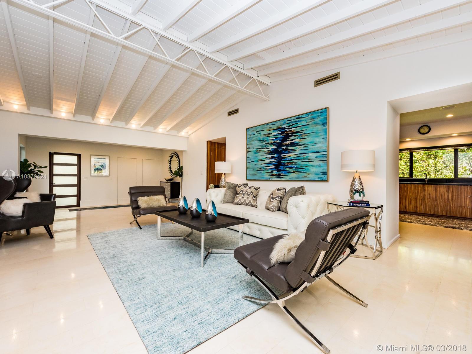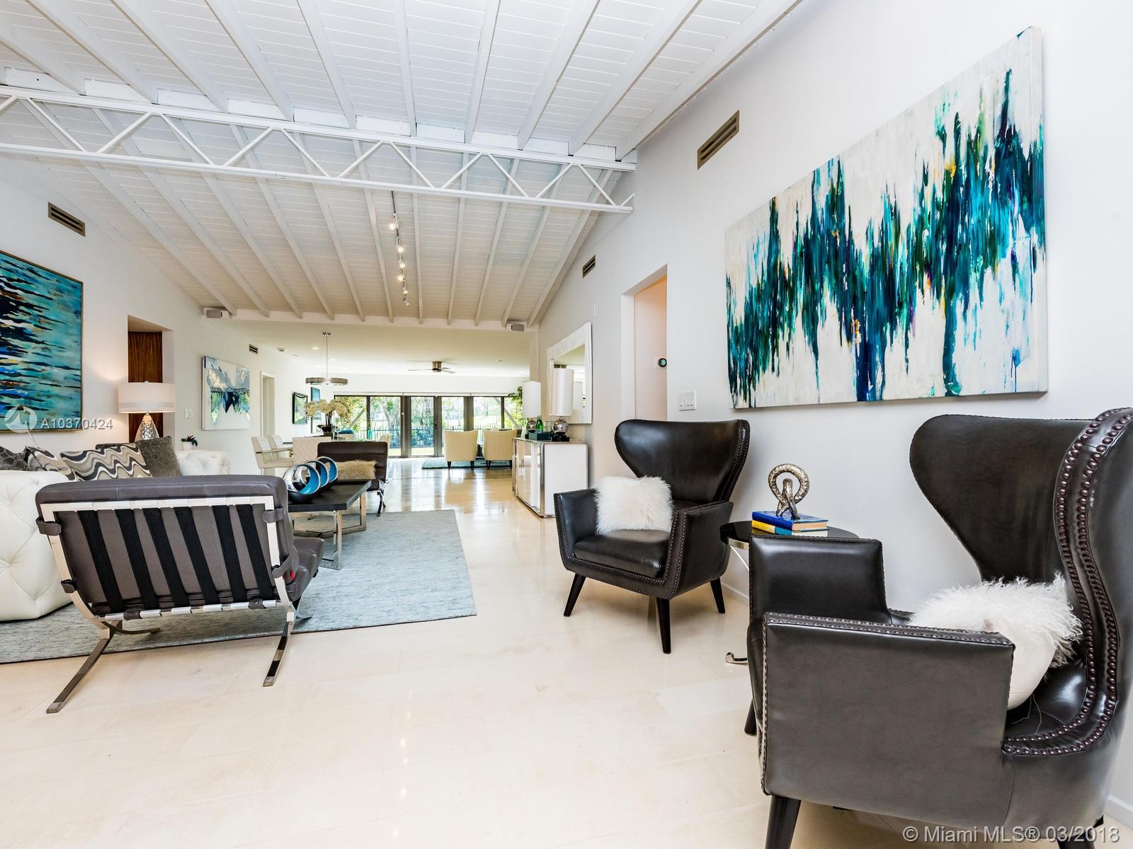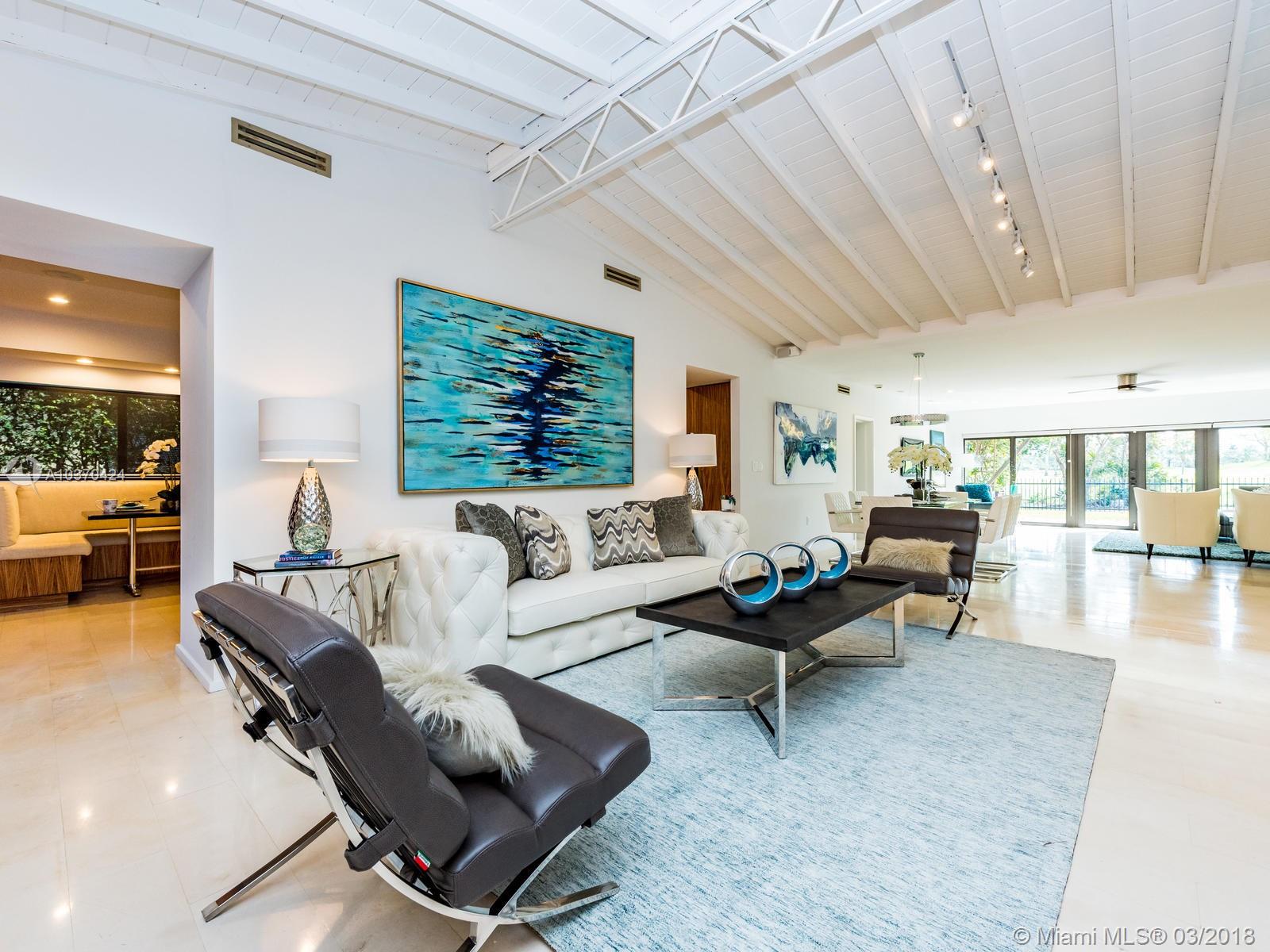 Gorgeously appointed modern floor plan by New York Designer Christopher Coleman with views of the golf course and pond at La Gorce Country club. Main house has 4 spacious bedrooms with 4.5 bathrooms (including housekeeper). 1 Bed/1 Bath guest house with ample kitchen and independent entrance. The living area welcomes you to a large rear patio. The master bedroom includes walk-in closets and ensuite creating a private enclave aware from the rest of the home. Resort style living steps away from restaurants, shops, and the famous Miami Beaches.