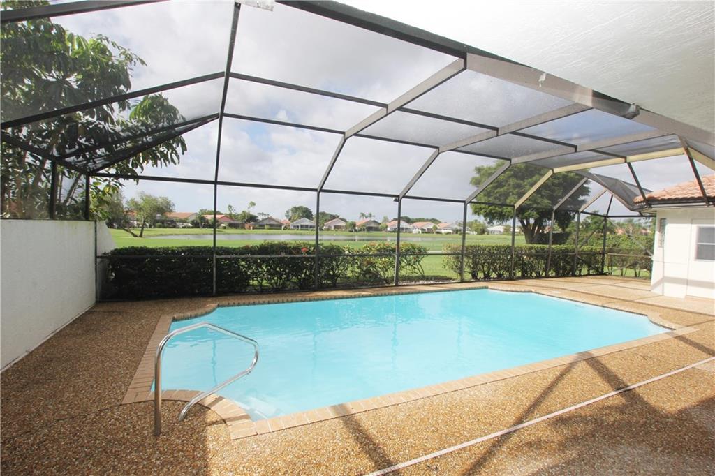 Mandatory club membership required to Boca Woods Country club of $60,000($30,000 Equity & $30,000 initiation) 10 days in advance of closing. Yearly membership fees are approximately $20,000. Great 3 bedroom 2.5 bath single family home with golf and water views. Property features bonus room & bathroom off kitchen that can be used as 4th bedroom or office, tile throughout main living areas, screened pool area & corner lot.