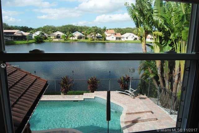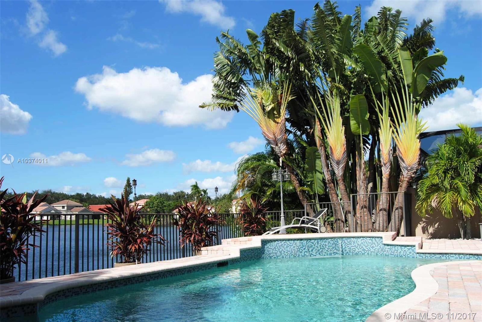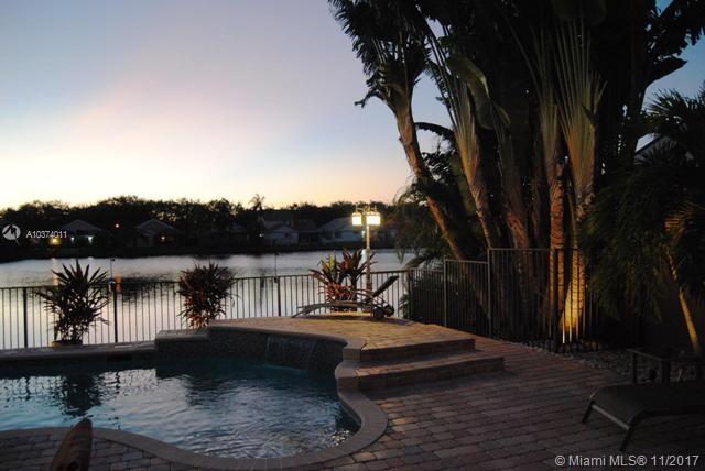 Gorgeous and rare 4 bed 3 bath home with pool on quiet and wide canal, one of the best serene sunset views in the exclusive and desirable gated community of Mayfair at Jacaranda! Contemporary open floor plan, flooded with light coming from 5 large hurricane proof French doors. Updated kitchen with granite countertops and stainless steel appliances. Home features a large master bedroom w/walk in closet. All bathrooms and pool have recently been remodeled. Pool has beautiful glass mosaic, a water feature and a color changing LED light. Home is move-in ready.