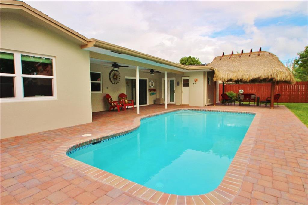 Wow what a rare opportunity to get an awesome "Home" on a Huge, Over Sized Lot in a great location!!. Lovely Open concept Kitchen with Wood Cabinets, Granite Counters & Window onto the Pool/Garden. 30k on Impact Windows, Huge 10,000+ Sq Ft Fenced, Lot, Huge pool with lots of paver area and a large Tiki Hut, Nice Laundry Room, 2yrs on H2O Heater/1 Car Garage/Crown Molding/Gutters/Sprinkler System/Great Roof. Living Room Sliding Doors flow out onto covered Porch Area...