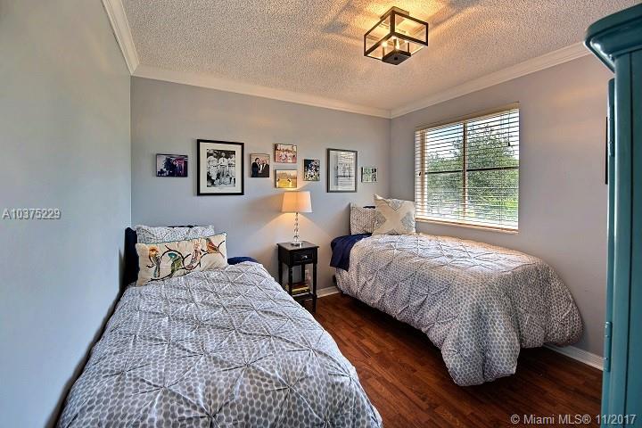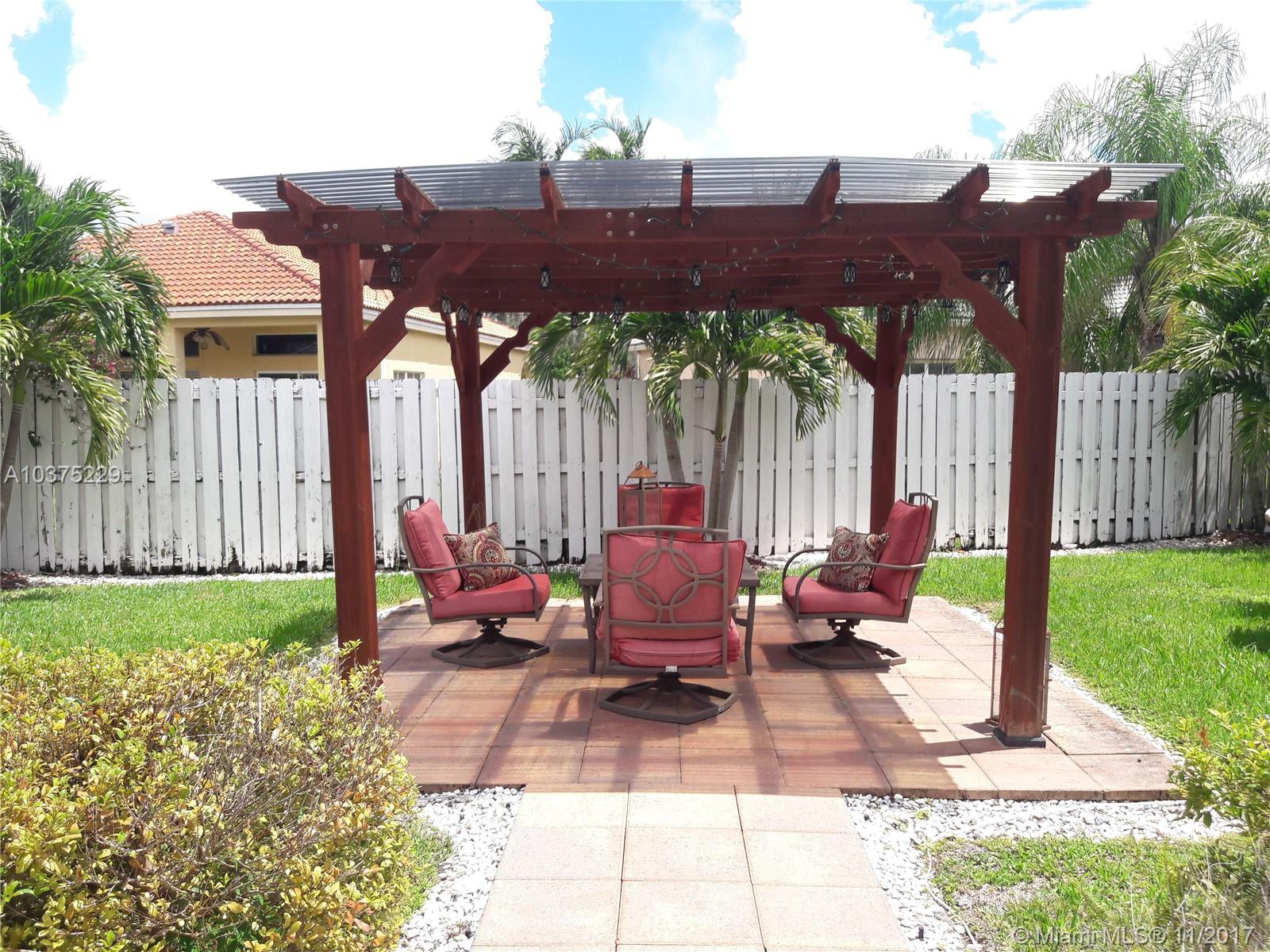 Built strong, Concrete brick exterior on both levels. Enjoy this Mediterranean style upgraded home in gated Meadows community! Spacious 4 bedroom, 2½ bath, 2 car garage w/covered front porch & fenced backyard for privacy. Plenty of room for kids and pets to enjoy! Fantastic area for year round entertainment w/outdoor speakers, lighted custom bar, and pergola. Renovated baths and kitchen w/custom wood cabinets, stainless steal appliances & granite countertops. Built-in organizer in bedroom closets and crown molding on both levels. Front load washer & dryer are upstairs. Property is just steps from community pool, clubhouse, kid playground, & basketball ct. Low HOA of $125.00 per mo (Pay quarterly)! A+ zoned schools, Close to shops, schools, highways, roads ++. Excellent place to call home!