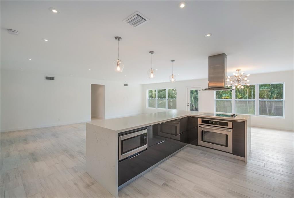 Amazing location East of Bayview Dr. in prestigious Coral Ridge! Completely "Turn Key"! This immaculate 3 bed, 2 bath, 2 car garage pool home incorporates modern design w/ an open concept kitchen complete w/ wrap around bar, white quartz countertops w/ waterfall edges, custom Luxor cabinets, wine cooler, separate prep sink & wet bar. White wash plank style porcelain tile floors throughout, custom bathrooms w/ floating vanities & custom fixtures. Impact windows, newly landscaped! Bayview School district!