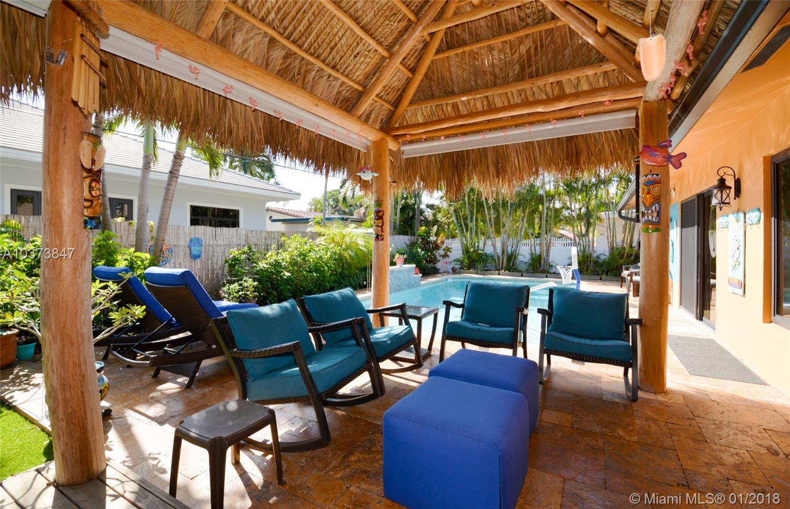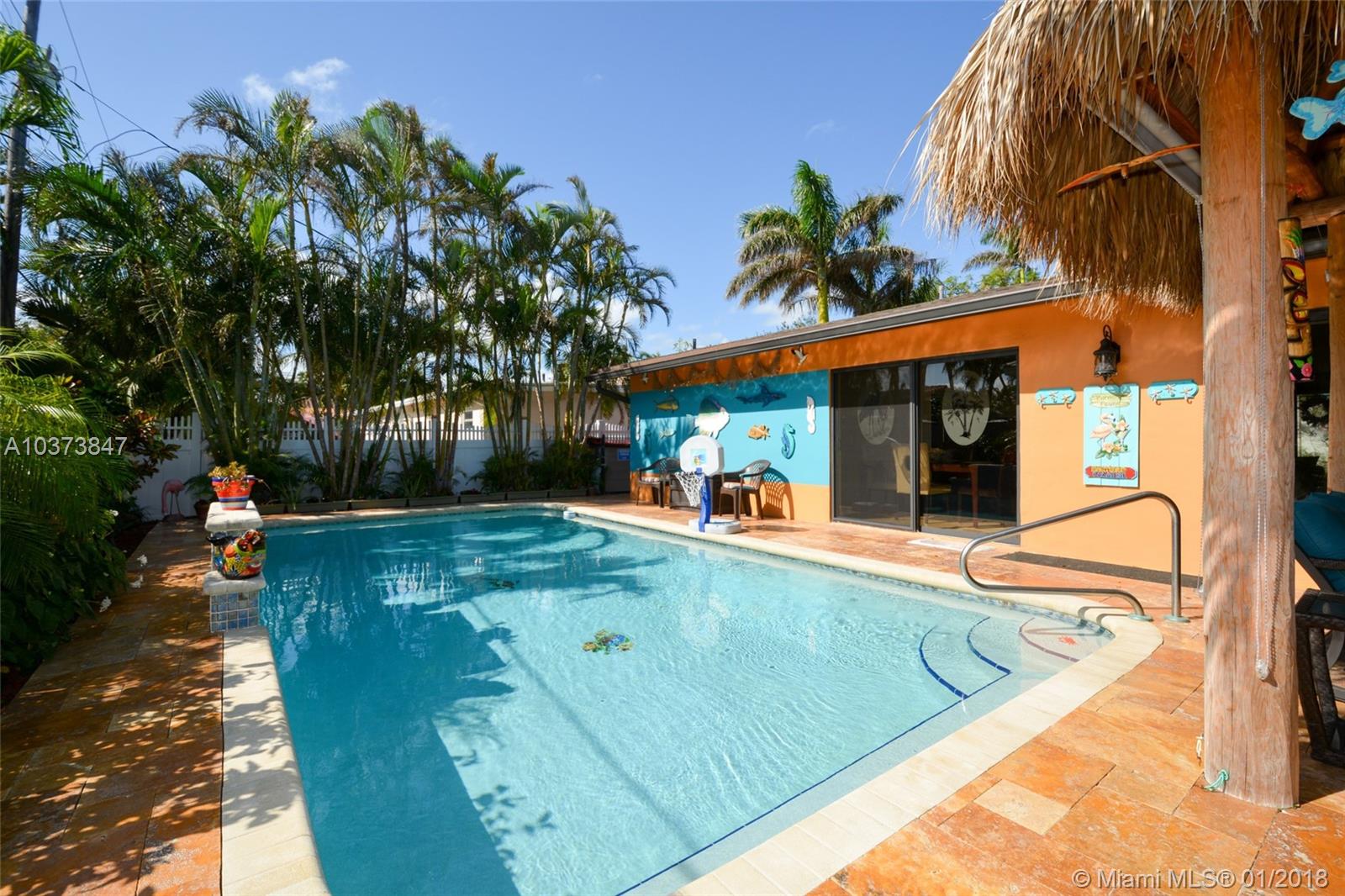 Beautiful Tropical Pool Open Floor Plan Home in Prestigious Hillsboro Shores with Private Beach Access. 3 Bedroom, 2 Bath Home with Separate Office/Den or Possible 4th Bedroom, Totally Remodeled and Upgraded, Custom Kitchen & Baths, Tile Throughout, Spacious Kitchen Features Granite Counter, Custom Shaker Cabinets, Underlet Cabinets, Stainless Appliances . Hurricane Protected Windows and Doors, Honeycomb Window Treatment Shades. Incredible Back Yard with Authentic Seminole Indian Tiki Hut, Sparkling Pool With Lounging Ledge, Custom Changeable Color Outdoor lighting, Outdoor Shower, Professionally Landscaped, One Car Garage with Paver Driveway Holds 8 Cars. Optional Membership in Hillsboro Shores Inlet Club