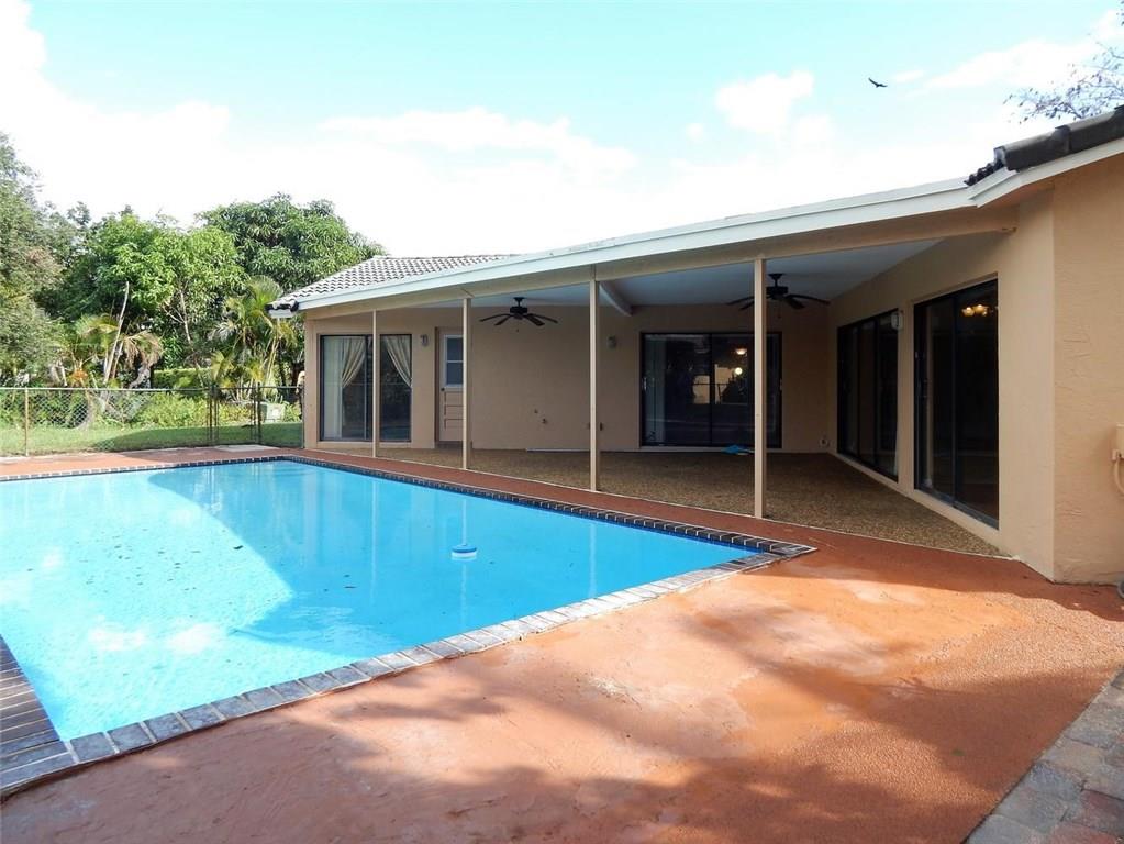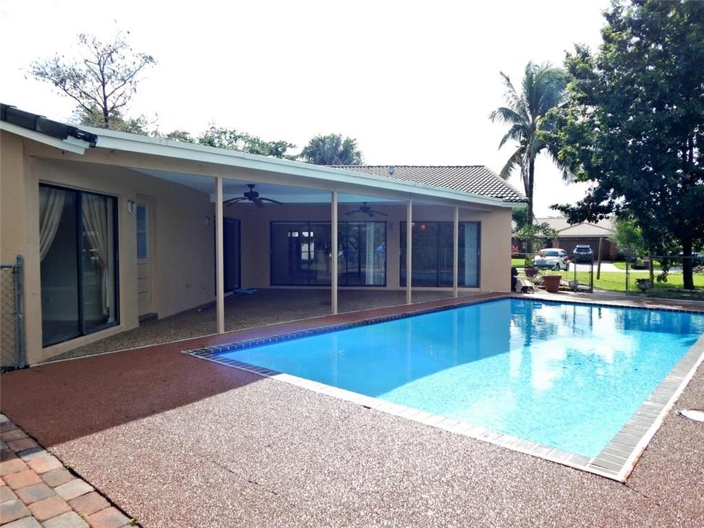 Spacious 1 story home with pool on an oversized lot! Home features 4 beds, 2 baths, kitchen island, wood floors, vaulted ceilings, new water heater, walk-in closet and open layout. Great for entertaining guests with large screened patio, pool, good sized fenced backyard, 2 car attached garage and circular driveway. Great location close to schools, shopping and dining!