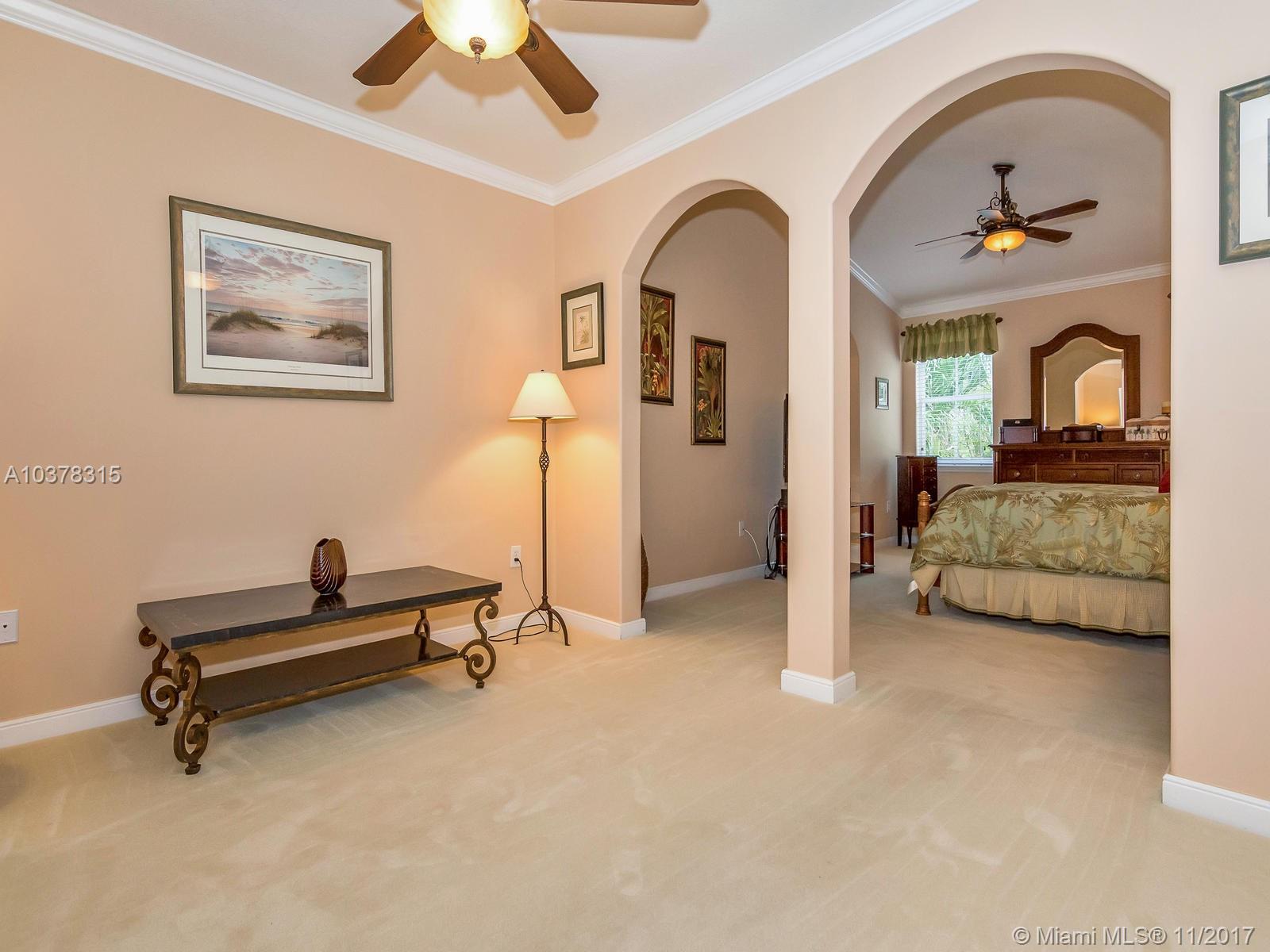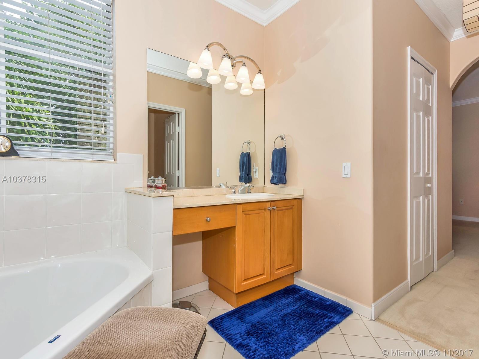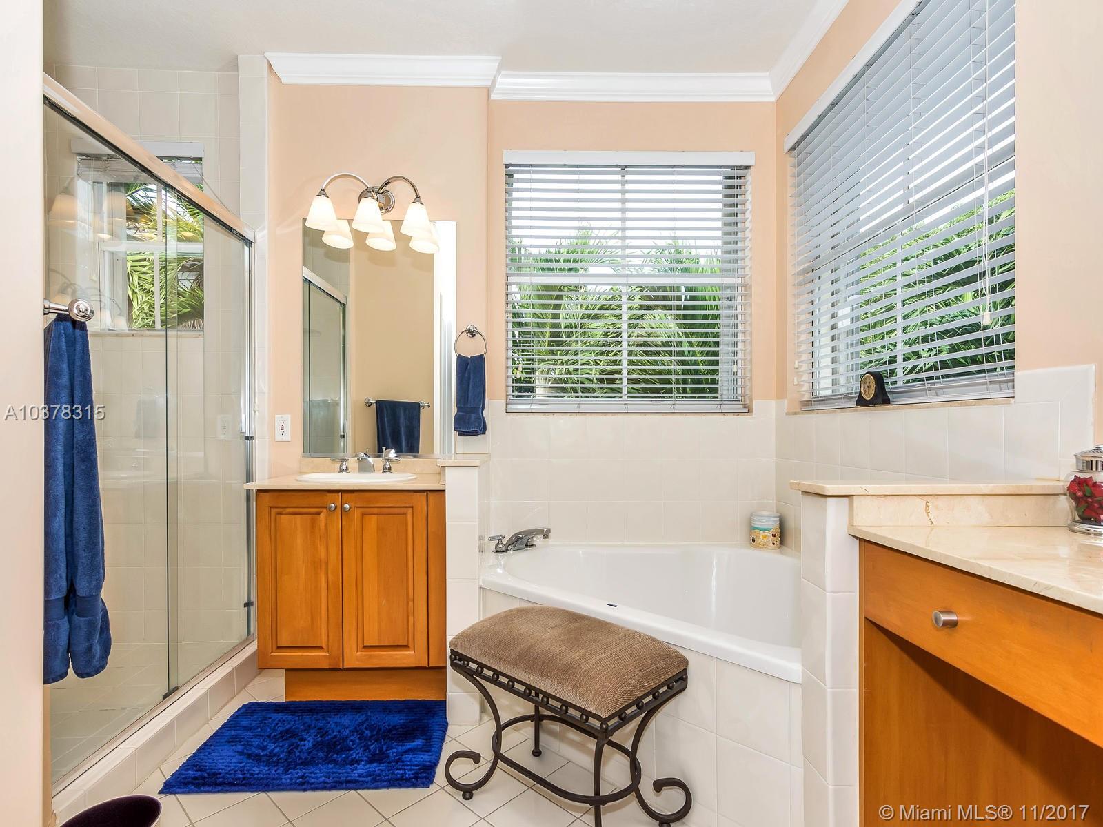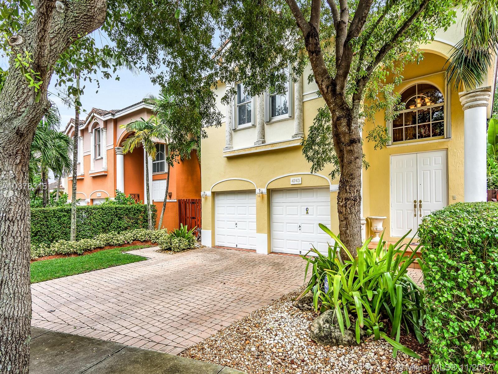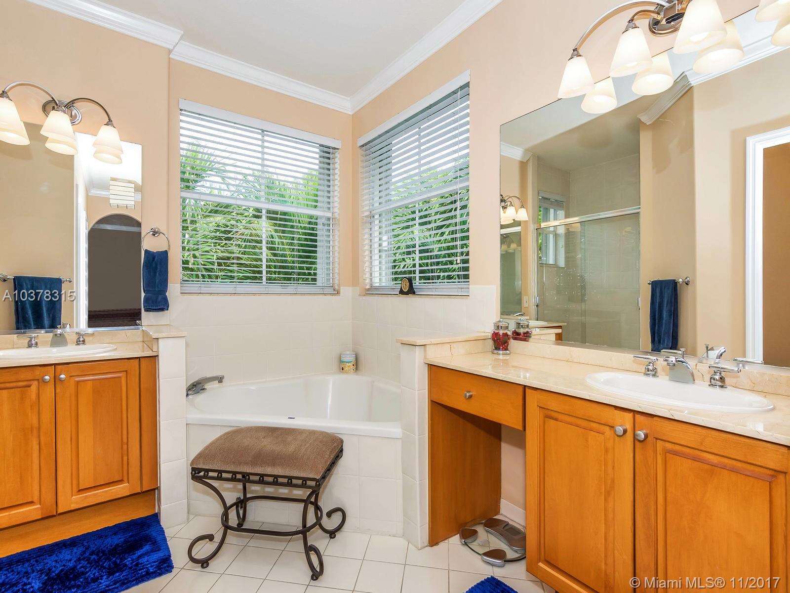 This magnificent home with a two car garage is located in one of the most desirable communities in Doral. This elegant house has 4 bed/3.5 baths with over 2,600 sqft of living area that features a fabulous layout with high ceilings, crown and chair moldings throughout. Spacious living room, formal dining room and a family room which overlooks the open concept kitchen. Top of the line stainless steel appliances and granite counter tops. Huge master suite has a large separate sitting area. MBR bath has dual vanities, stand-up shower with glass doors and a whirlpool tub. Guest bedroom on first floor has private full bath. Well landscaped patio perfect for entertainment. Private community with guarded gate is beautifully landscaped and maintained.