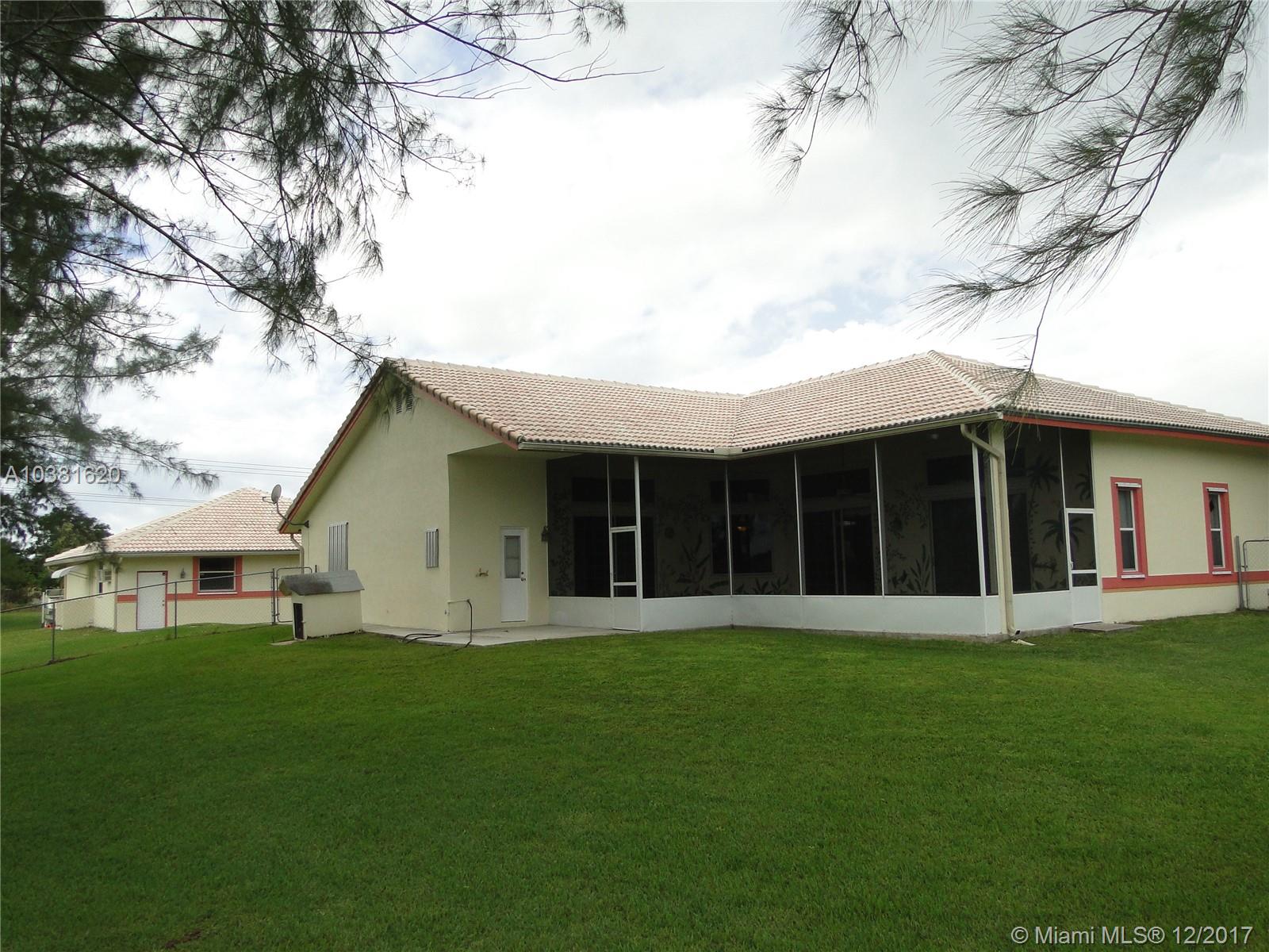 ESCAPE after a busy day to privacy; fish in your own backyard. Centrally located to Miami & Broward just west of I-75. IMMACULATE in & out. Very large with detached 4 car gar and 1 bed in-law apt. Beautiful open field for barn, RV, boat. Room for pool. Huge screened patio over lake. 3 way split plan. Oversized master suite & bath w/ double door foyer entry, jacuzzi and shower. 2 beds with Hollywood bath and 4th bed in house with separate cabana bath. Very open and bright. Many more amenities. A MUST SEE!