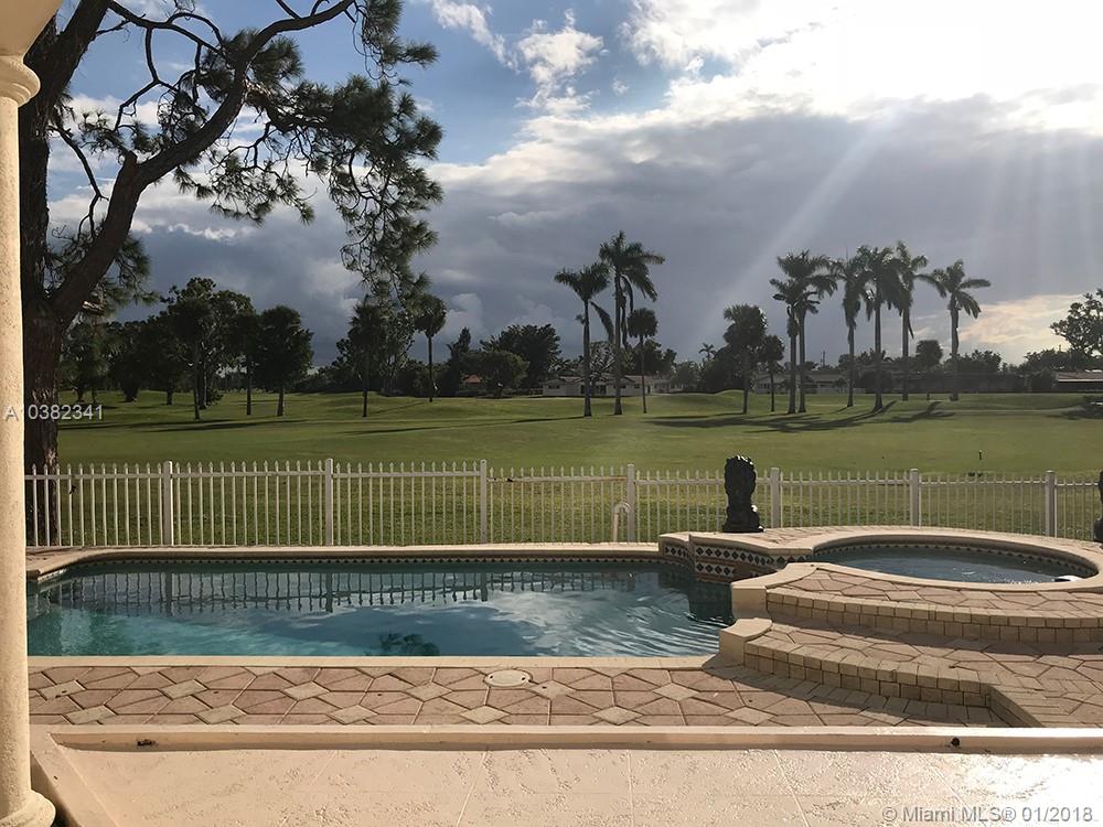 AMAZING FIND - LUXURY ON THE GREEN - This stately, unique 2-story 5 Bedroom 3.5 Bath gem offer an impressive open floor-plan, pool with spa, and an over-sized separate master suite upstairs with 350 sq. ft. terrace overlooking the golf-course at Country of Miami Estates. Master suite offers a giant bathroom spa, and two walk-in closets. The huge custom island kitchen is a chefs dream with tons of cabinets, and massive windows through the entire home. Completing the inside includes formal dining, sunken Florida room, breakfast area, pantry, washroom, extra-large 2 car garage, and covered patio perfect for entertaining directly on the golf-course. Dazzling curb appeal featuring impressive driveway with large palm trees, a massive front and back yard with privacy hedges.