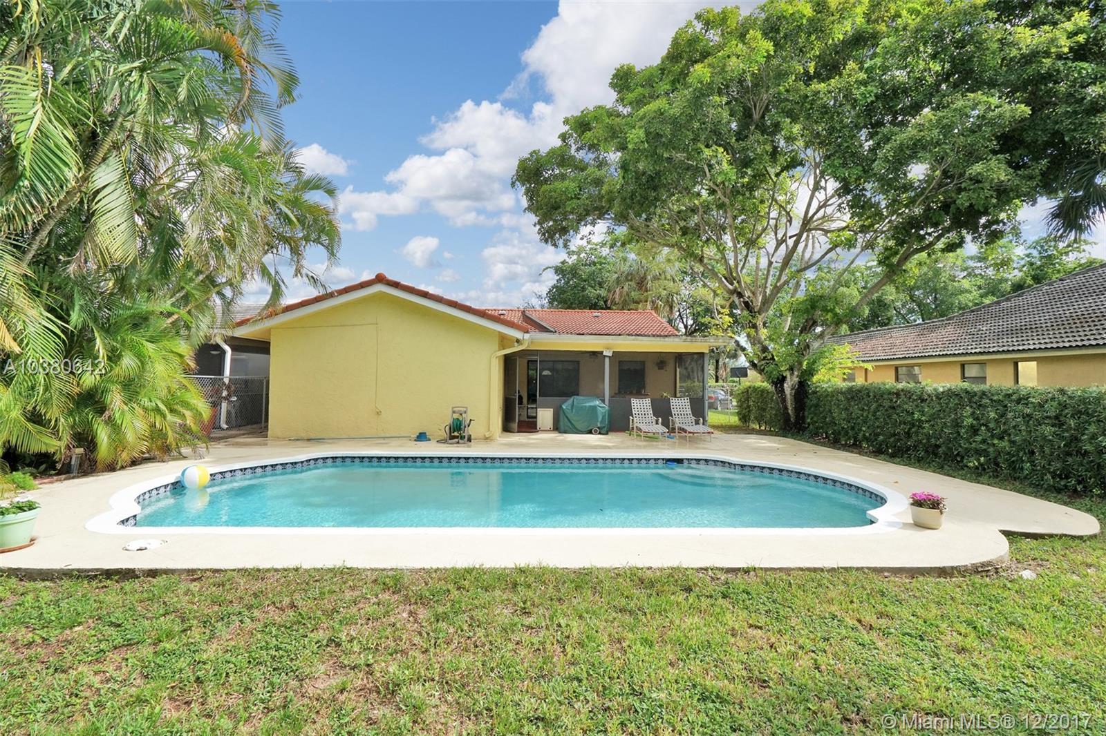 WELCOME HOME!!!! Don't miss out on this 3/2 Single Family Home with 2 car garage in the heart of Coral Springs! Home features update kitchen with granite counter tops, stainless steel appliances, tiles throughout with solar heated water heater! Master bathroom renovated within the last few weeks. Screened patio over looking large fenced yard with pool! No neighbors behind! NO HOA!