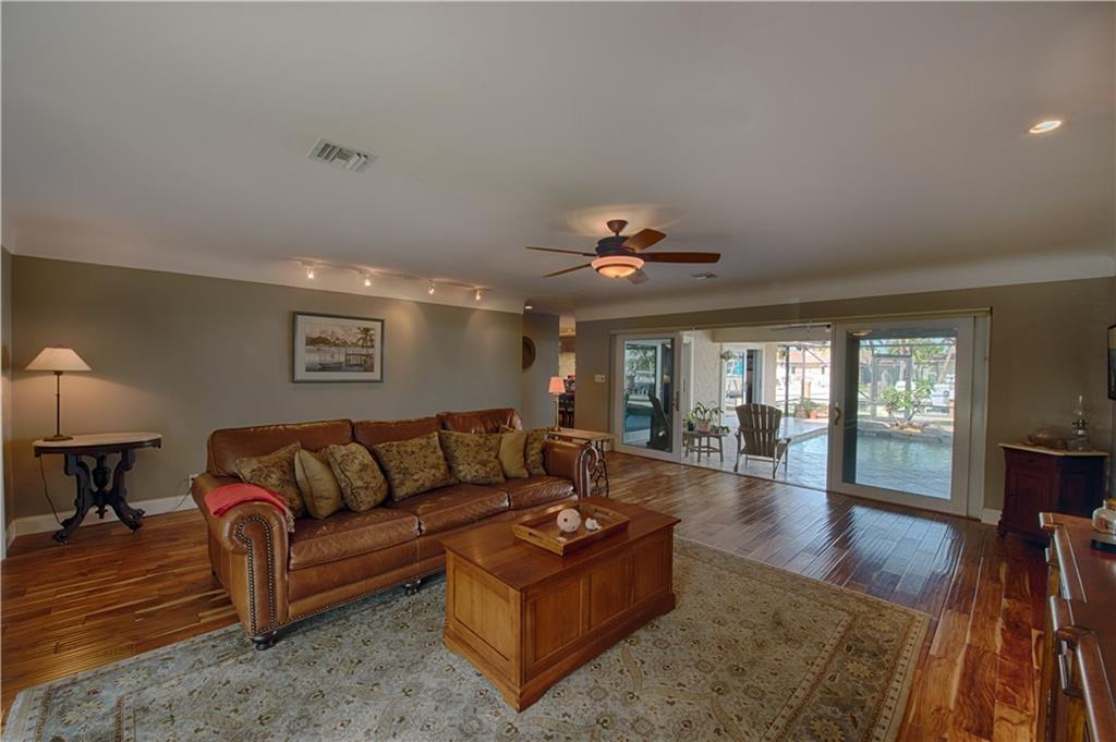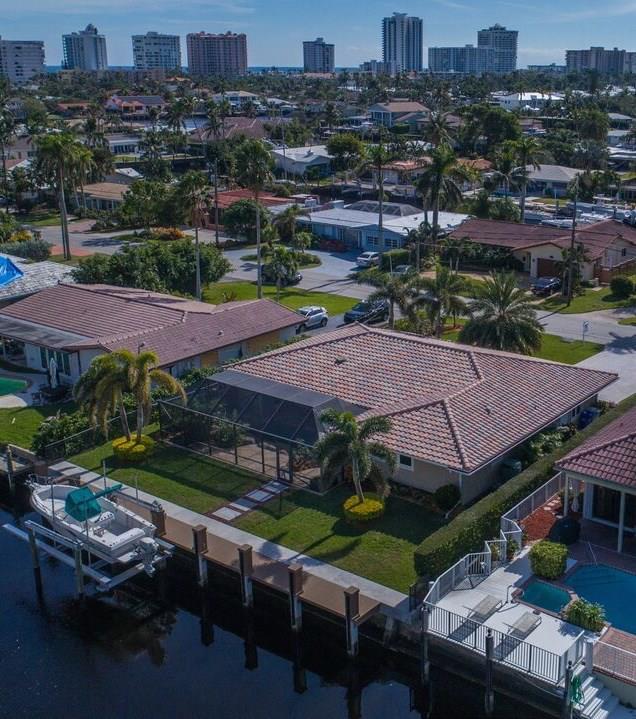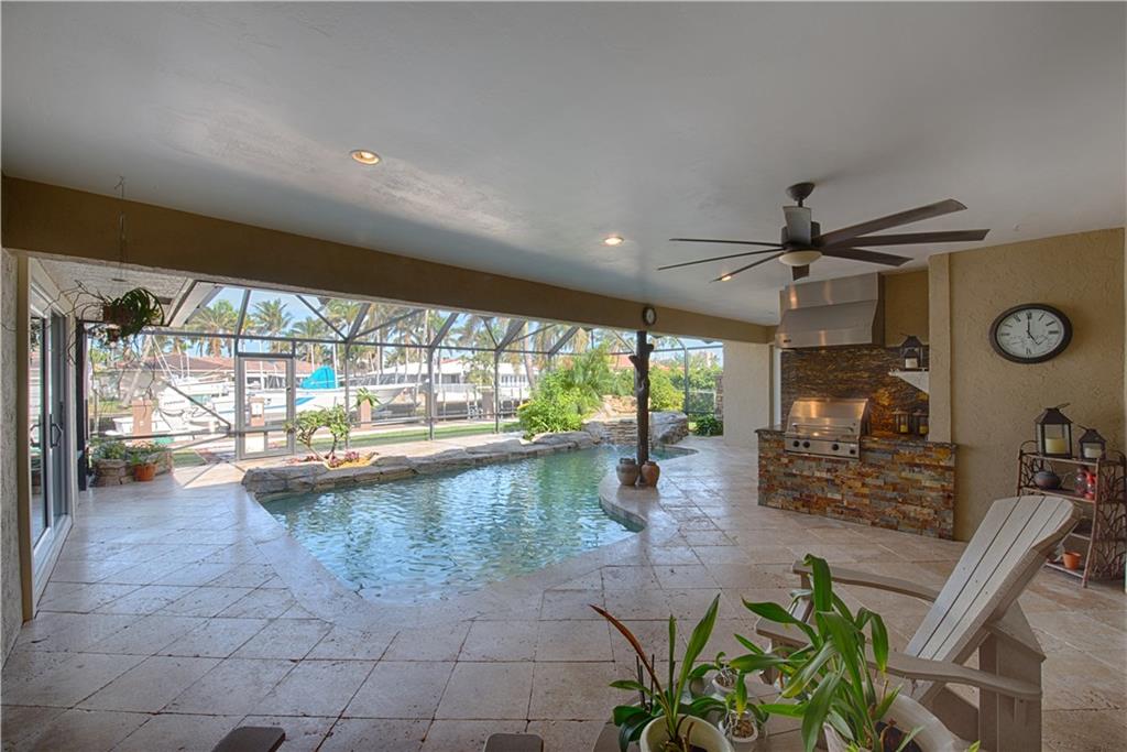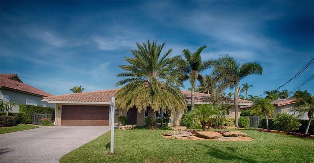 Remodeled in 2013, 3 bed, 3 full bath home w/hand-scraped 3/4" Teak floors throughout. Gourmet kitchen, Viking gas range & wine fridge, subzero refrigerator. All baths remodeled. Three 13' x 14' bedrooms, 2 master suites w/pool & water views. All impact windows/doors. Natural gas tankless water heater, grill & stove. Lot 80' wide on deep, no fixed bridges canal, 2 minutes to intracoastal waterway, 15 minutes to ocean. 70' dock w/new 20,000 lb boat lift. Saltwater pool & spa w/waterfall in screened patio.