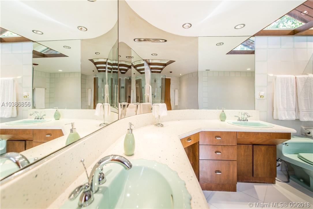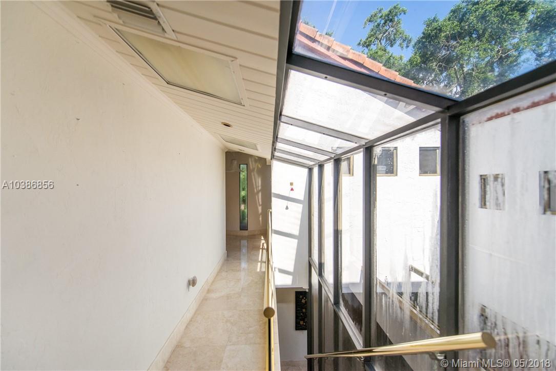 A unique Coral Gables residence custom built in 1983 by Architect Dov Liven. Designed w/gallery walls, 1st flr living area surrounds a glass atrium complete with a private spa for relaxation. Surrounded by Formal Dining, living, kitchen, family rm & guest bdrm w/en-suite bath. 2nd flr Master suite/bath with open pyramid wood beam ceiling. Balcony overlooks pool/patio. 3 bdrms, lg bath. Separate laundry & 2 car gar . Completes this beautiful home.