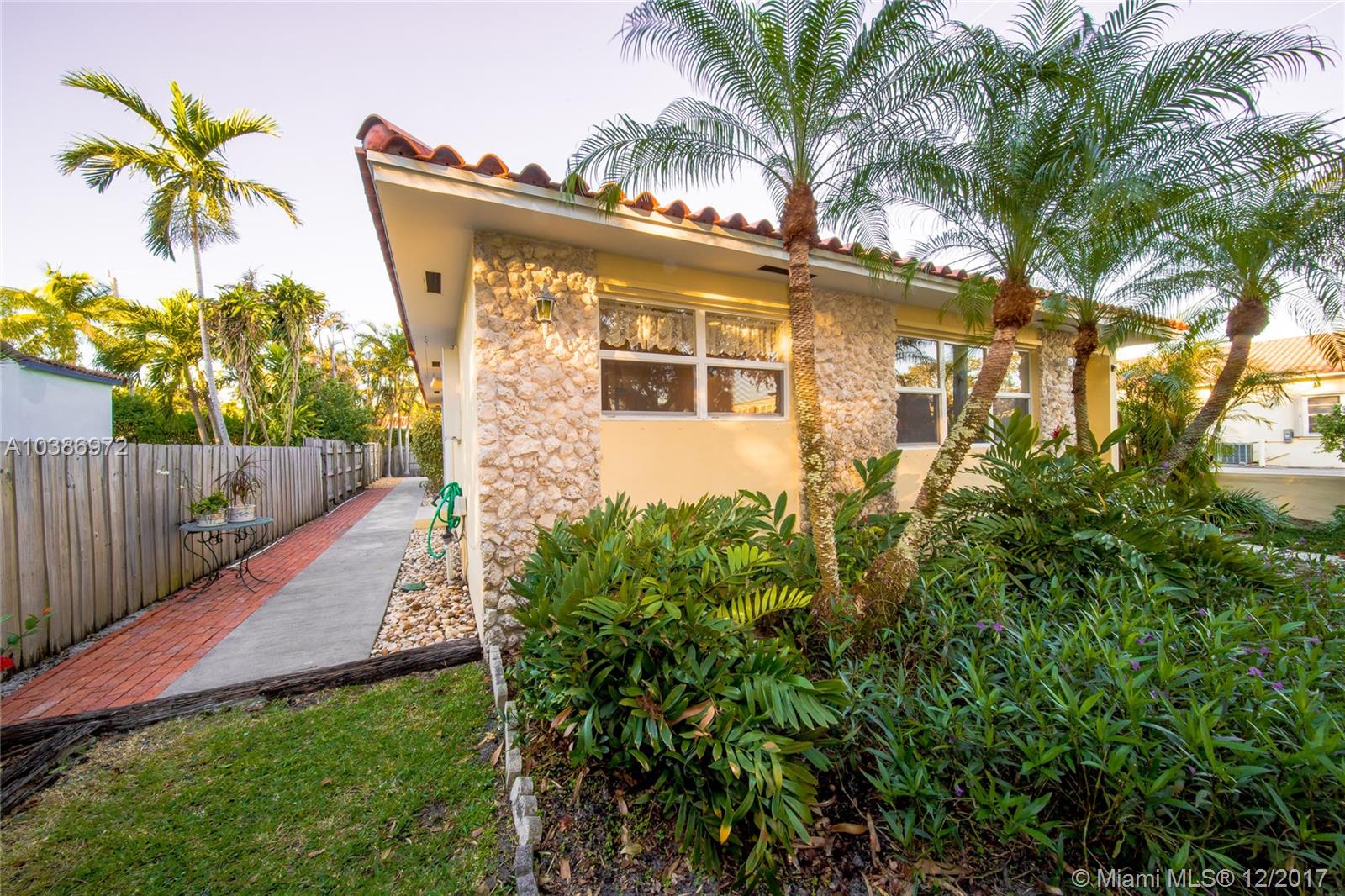 CENTRAL SHORES CORAL CHARMER. If you've been looking to get into Miami Shores, but haven't found the right opportunity, then this hidden gem may be for you. Just steps away from Downtown Miami Shores, this well-maintained home has spacious bedrooms, a large eat-in kitchen, a well-designed layout and a hidden rear one-car garage. The large impact windows bring in lots of natural light and help you save money, and the blend of original details and smart updates offers endless options for those looking to add their own touch. With tropical mid-century exterior coral accents, lush landscaping and a stucco privacy garden wall, you can create your own slice of paradise. Easily walk to downtown shops and eateries, and just a few minutes to the Community Center, Aquatic Center and new Dog Park.