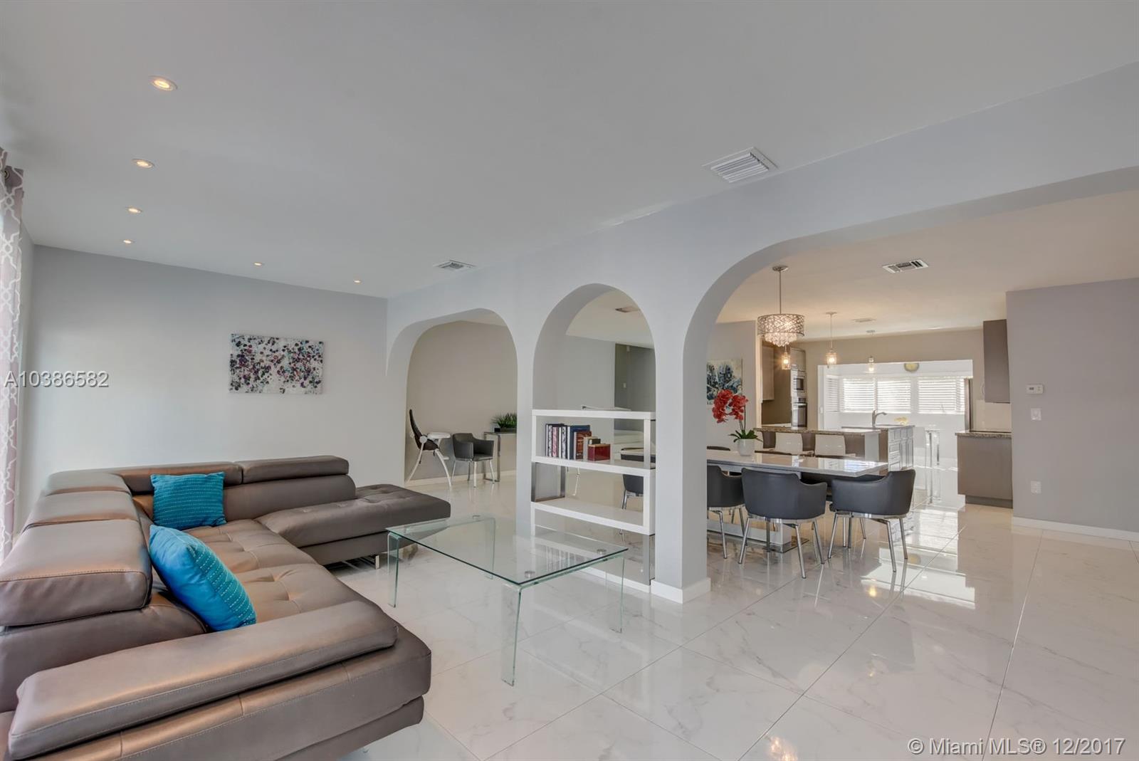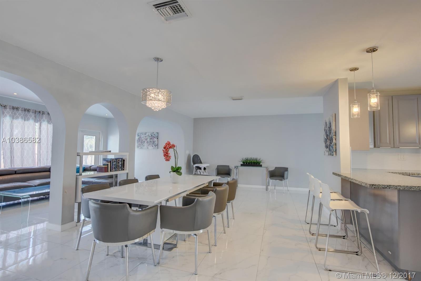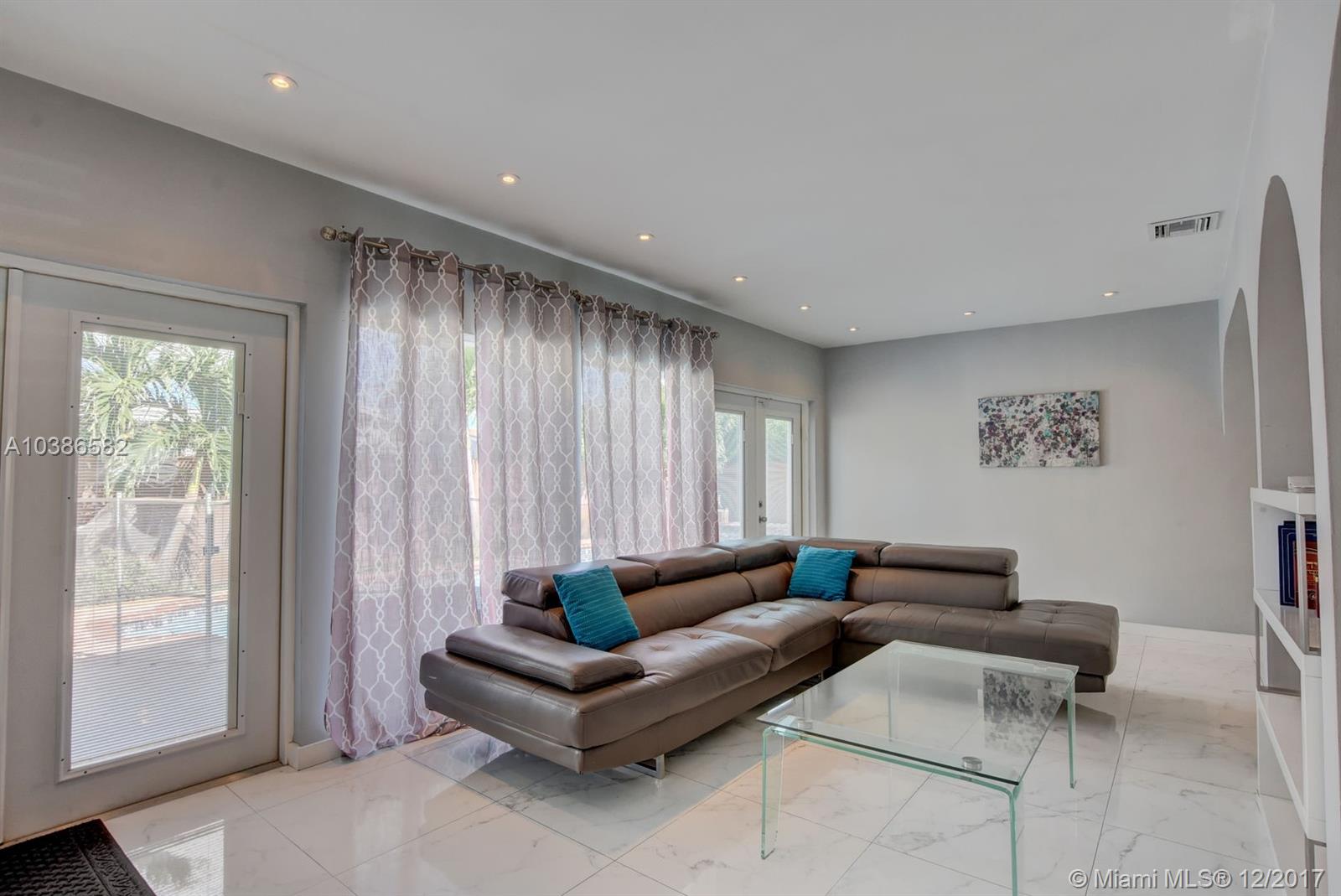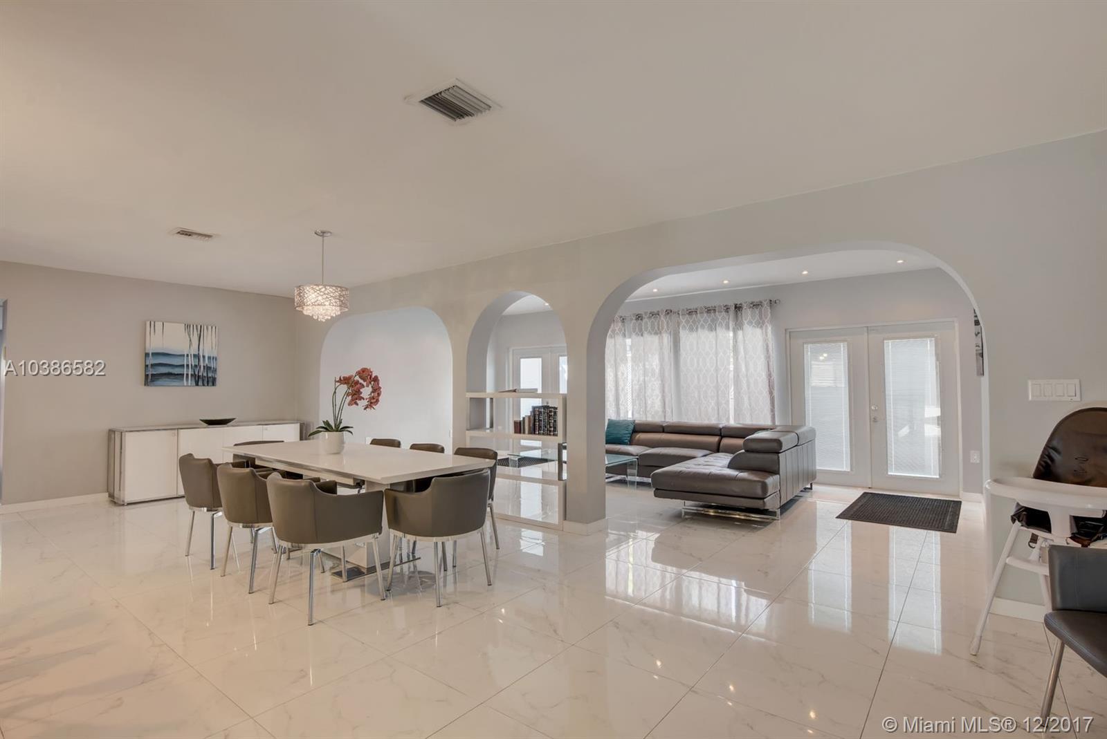 Beautifully remodeled home, fully furnished, over 3000 Sq Ft, 5 bedroom 3 full bathrooms, in-ground concrete heated pool and jacuzzi, fresh landscaped trimmed lawn with the look and feel of a resort ready for vacation full or part time. No need to go shopping, all indoor and outdoor furniture including all appliances, linens, towels and all household items are included. Great location close to the canal with a walking pathway alongside the water in very desirable north miami beach family neighborhood.