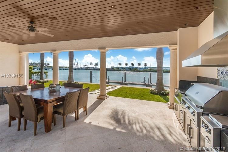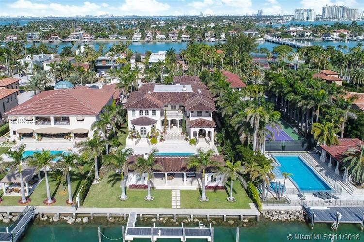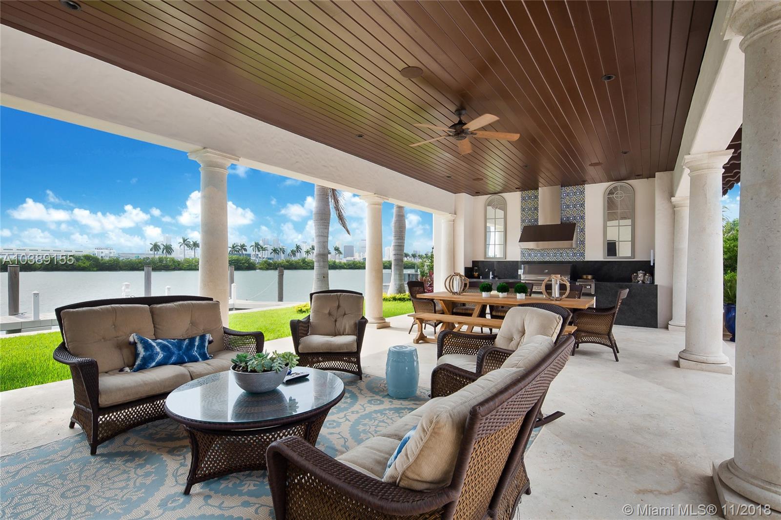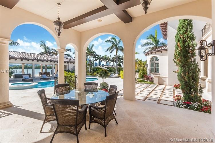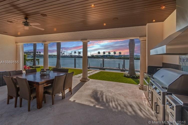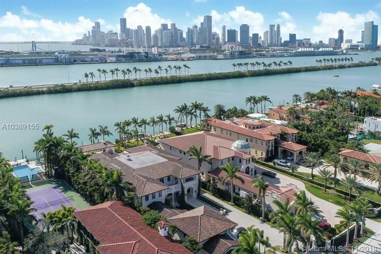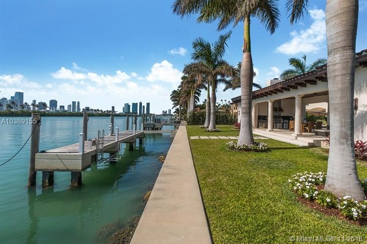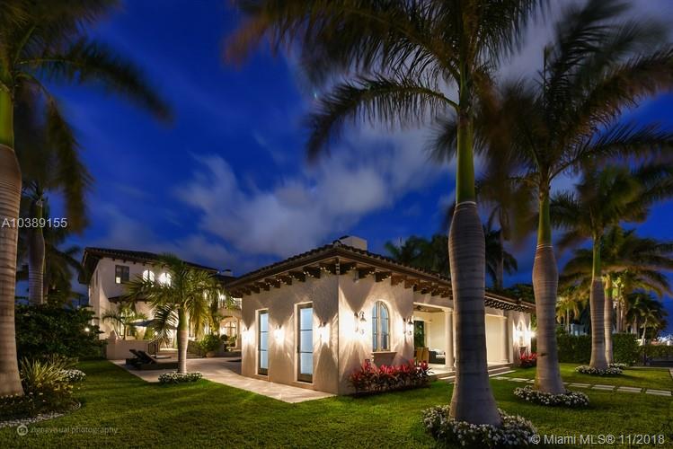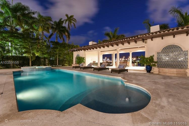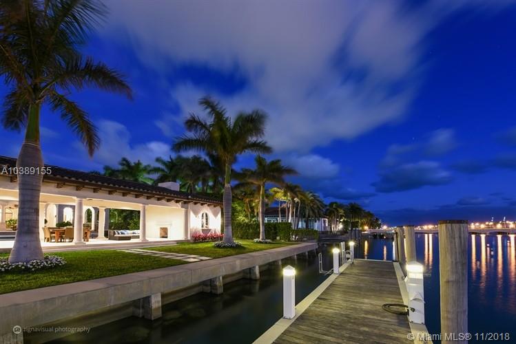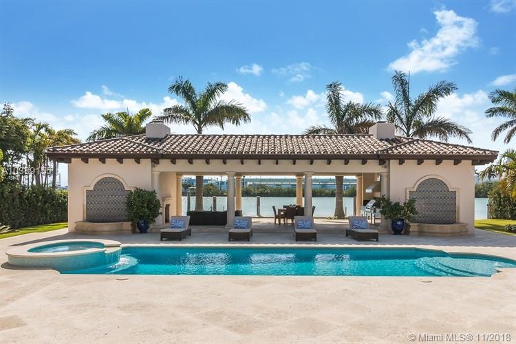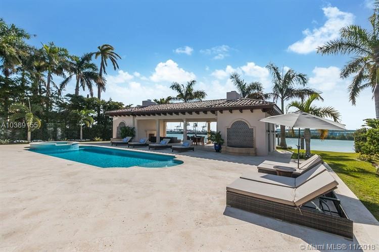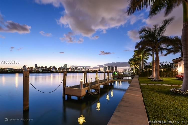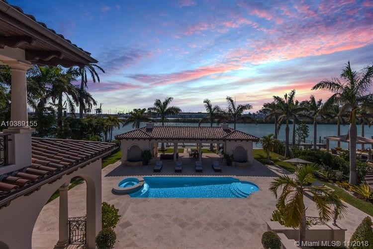 Stunning bayfront masterpiece nestled on a 30,000 sf lot in the exclusive & gated Palm Island. With 12,000 sf under AC this home is impeccably designed for entertaining inside & out w breathtaking views of the Miami Skyline. 7 bedrooms, 7 / 3 baths plus detached guesthouse w bed, bath, full kitchen & living room. Chef’s kitchen w top of the line appliances, breakfast area over looking terrace, pool and bay. Wood beamed ceilings, grand hallways & marble floors throughout. Manicured lawns, gate and 3 car garage complete this magnificent estate.