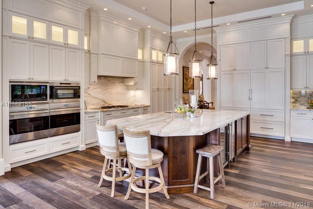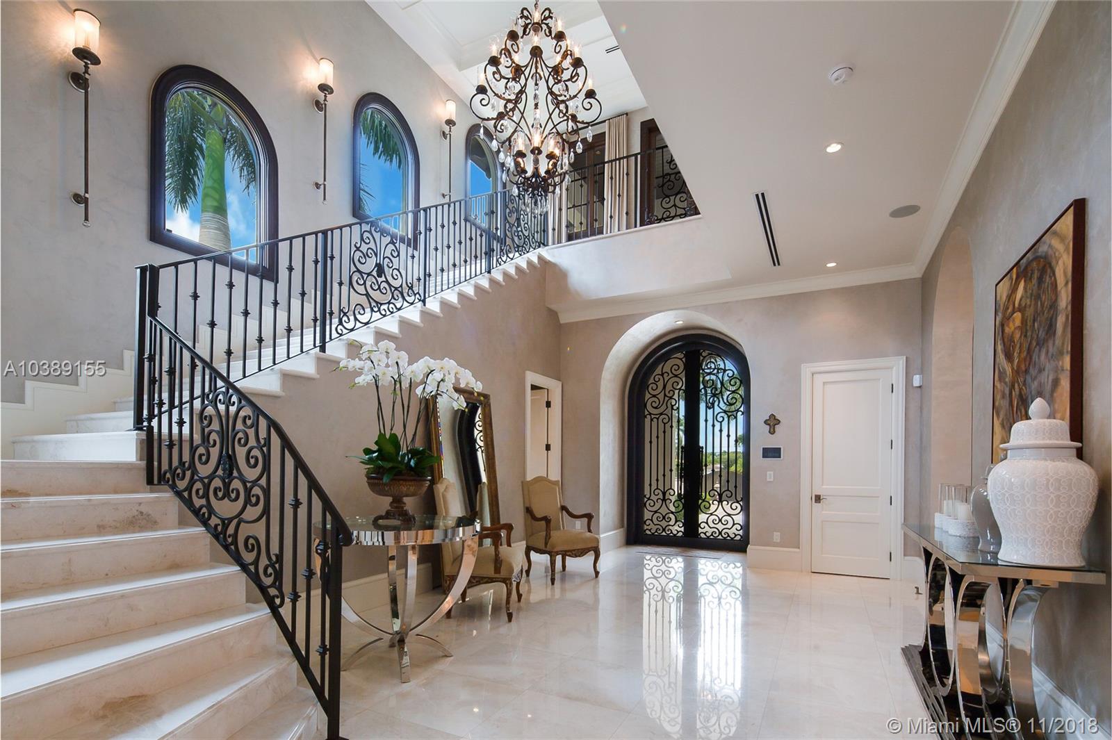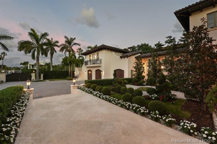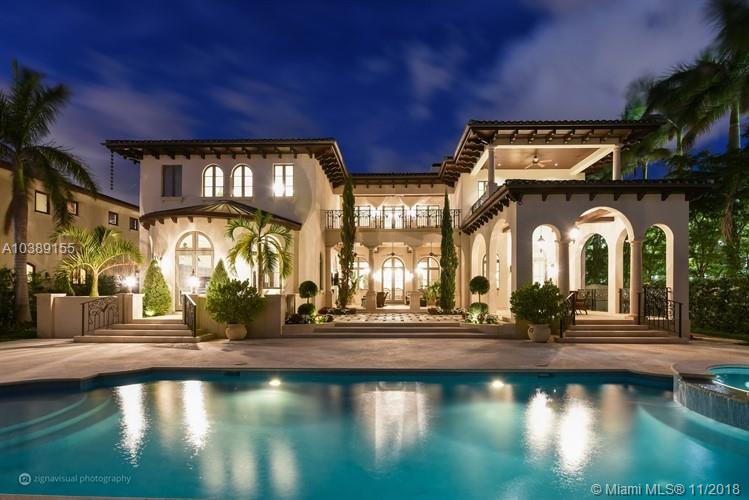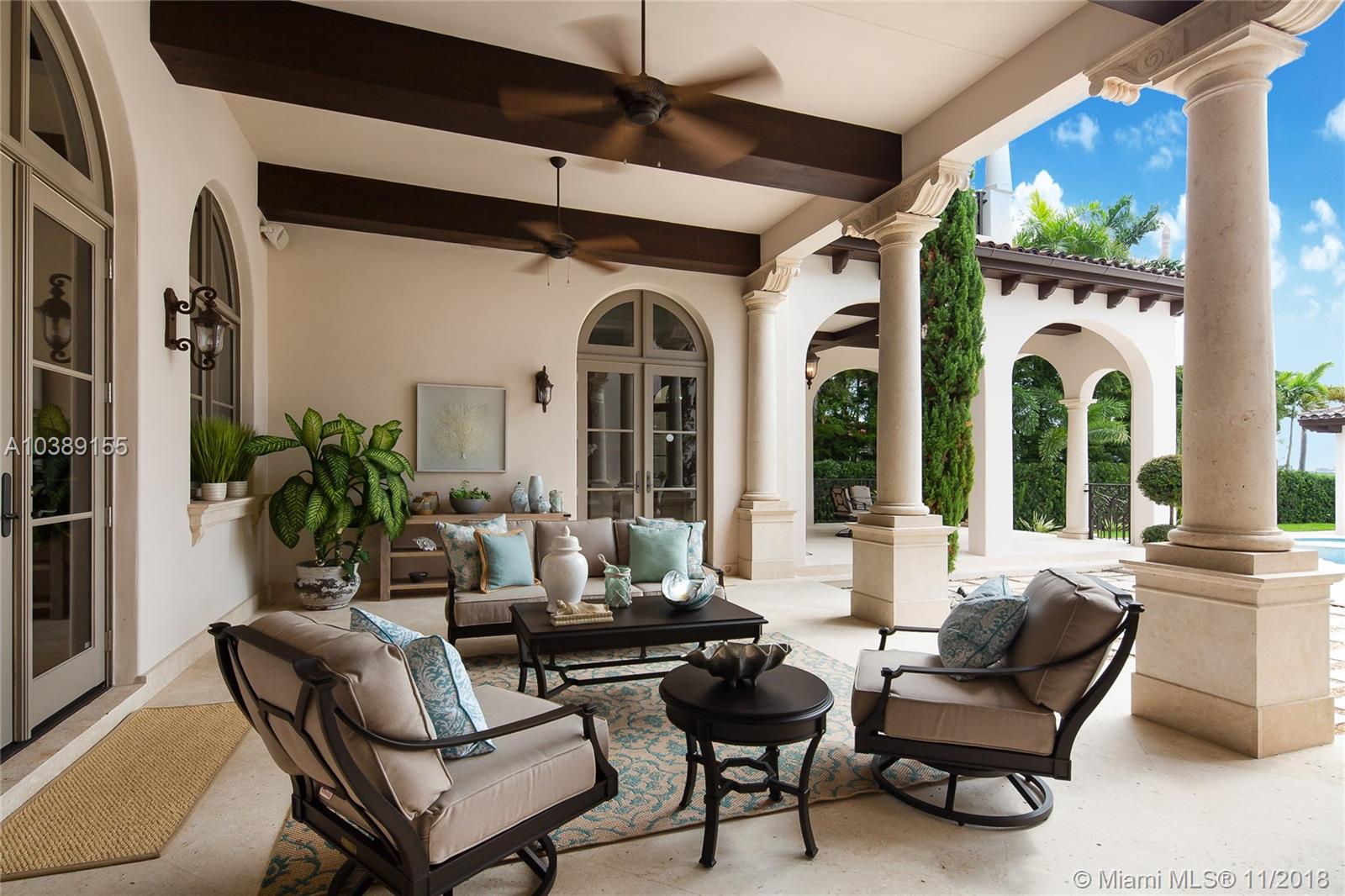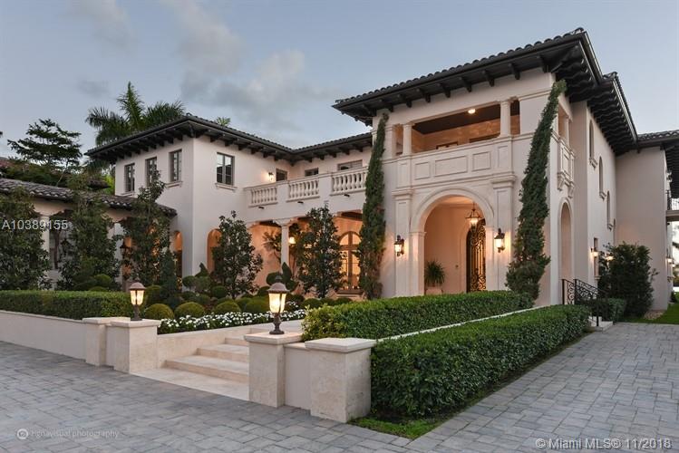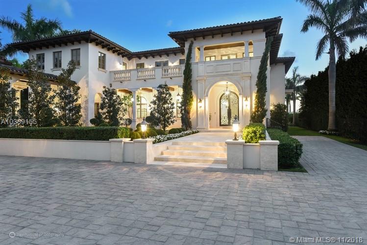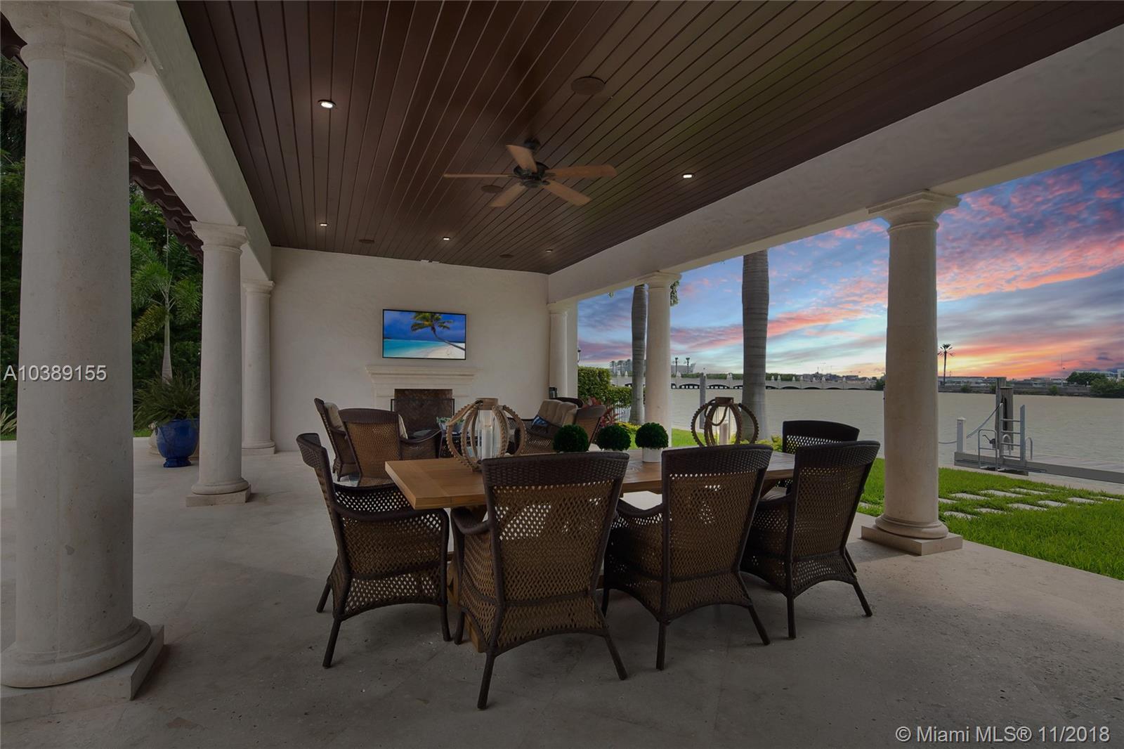Stunning bayfront masterpiece nestled on a 30,000 sf lot in the exclusive & gated Palm Island. With 12,000 sf under AC this home is impeccably designed for entertaining inside & out w breathtaking views of the Miami Skyline. 7 bedrooms, 7 / 3 baths plus detached guesthouse w bed, bath, full kitchen & living room. Chef’s kitchen w top of the line appliances, breakfast area over looking terrace, pool and bay. Wood beamed ceilings, grand hallways & marble floors throughout. Manicured lawns, gate and 3 car garage complete this magnificent estate.