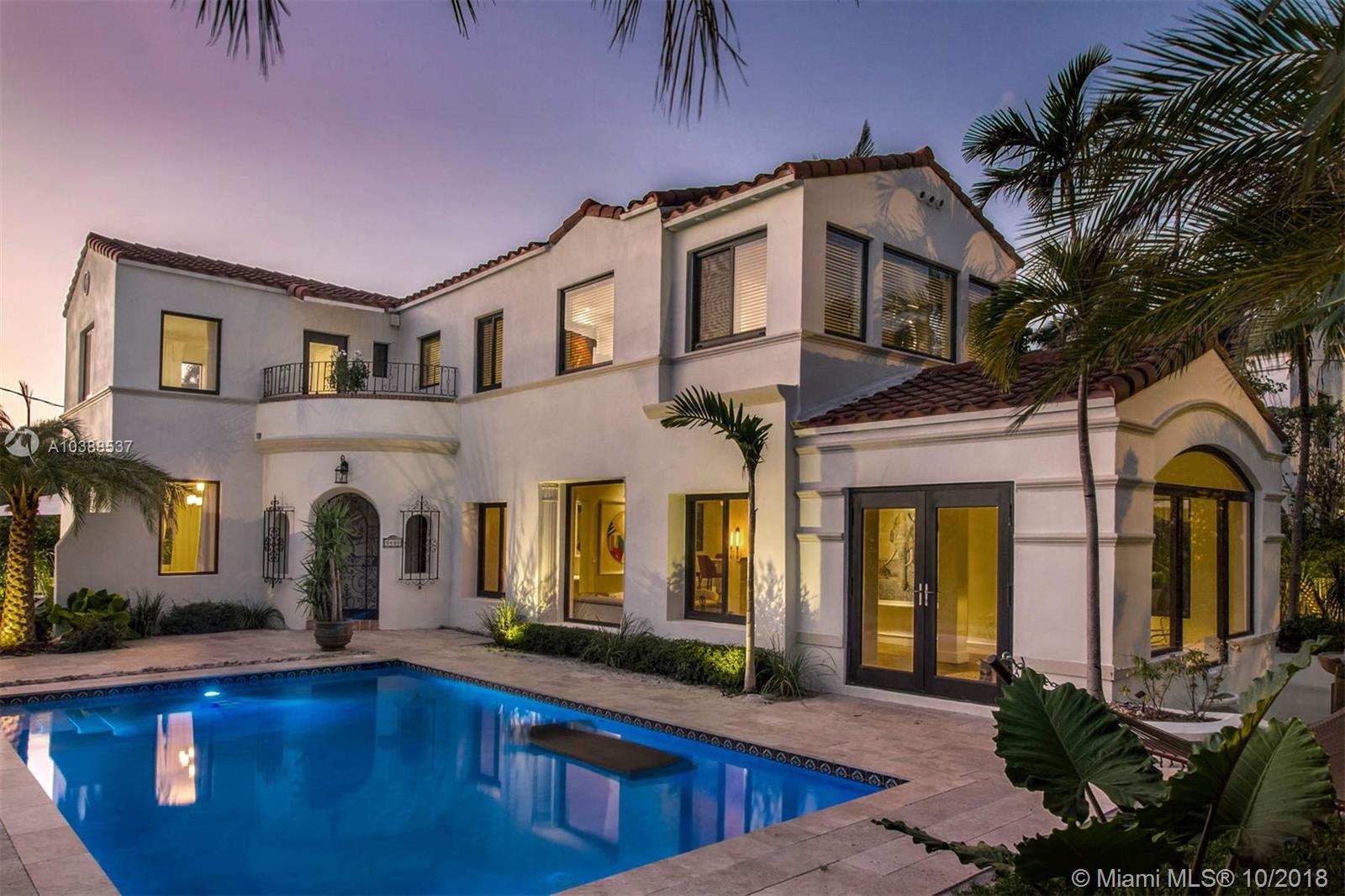 Stunning Art Deco home fully remodeled by world renowned artist on Prestigious Pine Tree Drive. This 4,004 SqFt residence sits on a oversized 9,329 SqFt corner lot. The main house contains 3 Bed/3 Bath upstairs and 1 Bed/1 Bath downstairs. Additionally, a 1 Bed + Den/1 Bath guest house is located above a 2 car garage. Contemporary kitchen with Viking Appliances and breakfast nook with easy access to indoor / outdoor living and entertaining areas. Spacious Master suite with walk-in closet and marble bathroom with shower and double vanity. Other updates include hurricane impact glass throughout, pool area and surrounding property wall.