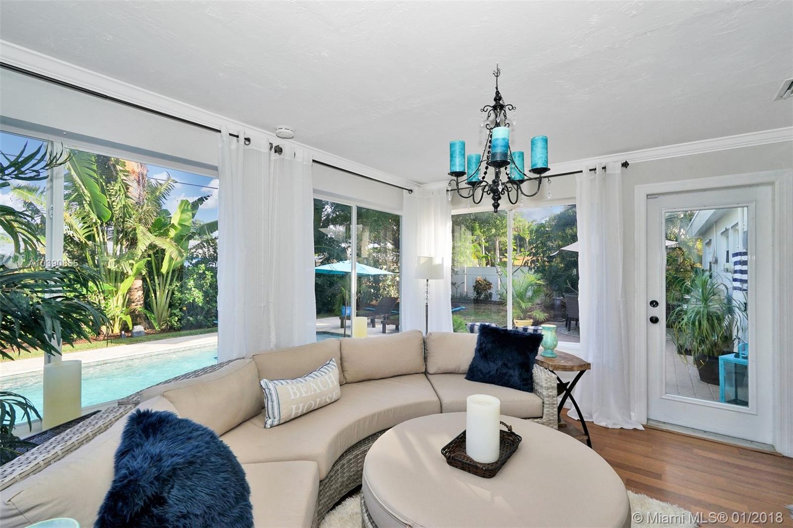 East Boca Living! Perfectly maintained 3/2 home! 2017 salt water pool, Beautiful yard & landscaping. Ext & Int paint, Kitchen has new 2017 S/S appliances, granite. Impact garage door, patio door & Hurricane panels w/new hardware. Newer A/C & W/H. Too many updates to list! This property is a must see. 5 min to beach, walk to shops. No HOA!