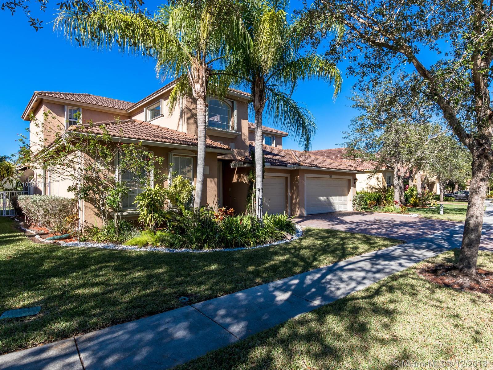 Isles at Weston presents a stunning 2 story house in exquisite conditions, that includes 5 bedrooms, 3 ½ bathrooms and an ample garage for 3 cars. Lavish kitchen area has wooden cabinets, granite counters and a new refrigerator. The vast family room has a view that stretches over the lake, all living areas have tiles, while bedrooms and stairs are carpeted. If you haven’t visited Isles at Weston, you’re missing out on a resort community with security, game rooms, pools, sports courts, exercise room, playrooms for children and much more. OPEN HOUSE NEXT SATURDAY 15 OF DECEMBER FROM 1 TO 3 PM