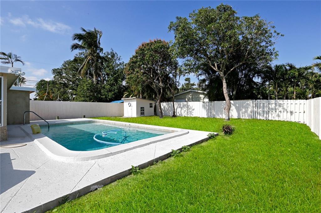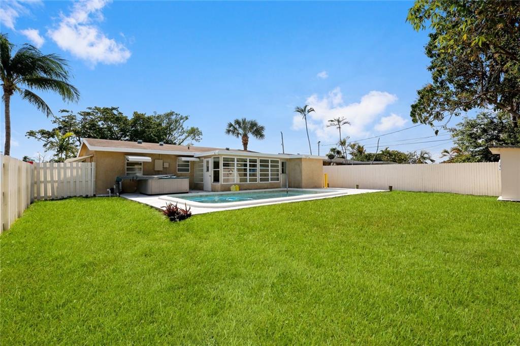 A newly renovated 3 bedroom / 2 bath turn-key home nestled on a spacious corner lot. Updated kitchen with new appliances. remodeled baths, new HVAC, new washer and dryer, new flooring, and freshly painted both in and out. Home features a bonus sunroom, swimming pool, hot tub, and large fenced-in yard with storage shed. Located in the Heart of Pompano on a quiet street, close to a beach, US 1, and Public Parks. Priced to sell and easy to show.