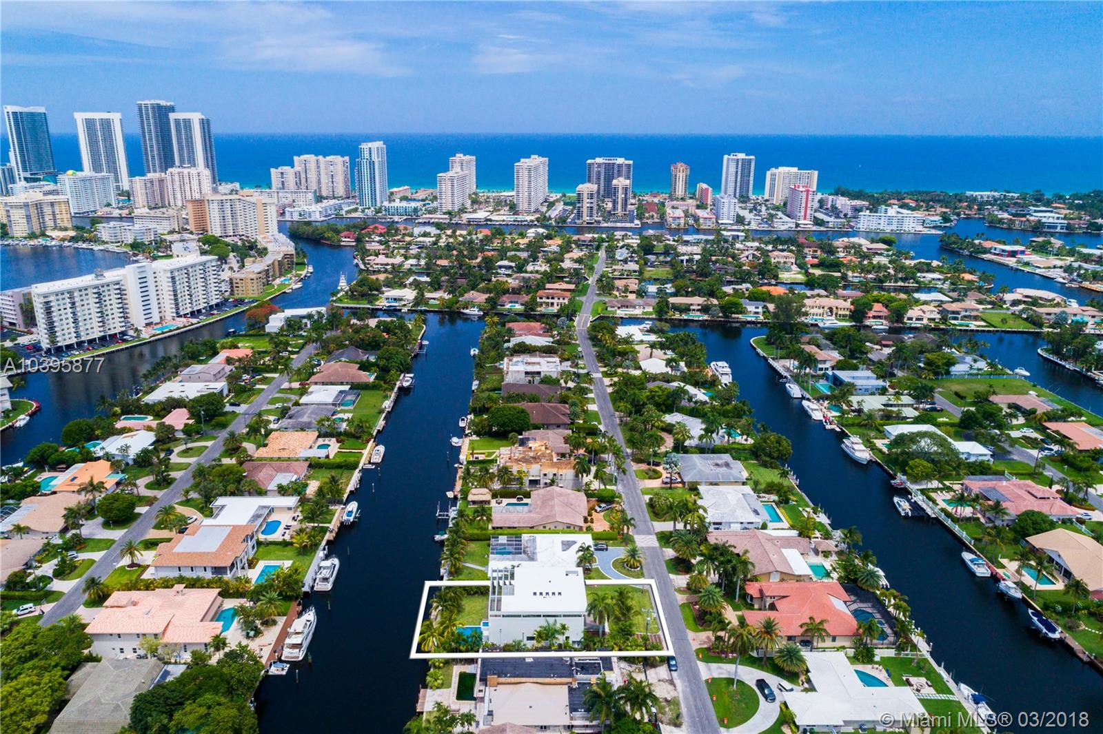 Stunning waterfront contemporary-style home in Hallandale Beach. This luxurious modern home features 6 bedrooms/5 baths, high-end finishes and top-of-the-line appliances. This 6,636 Sq. Ft. home boasts vaulted ceilings and tons of natural light throughout. Enjoy lush landscaping and gardens from over-sized terraces. Large bedrooms, open floor plan, and comfortable living spaces - both indoor and outdoor - make this the perfect home for living and entertaining. Private dock with ocean access, 2 car garage.