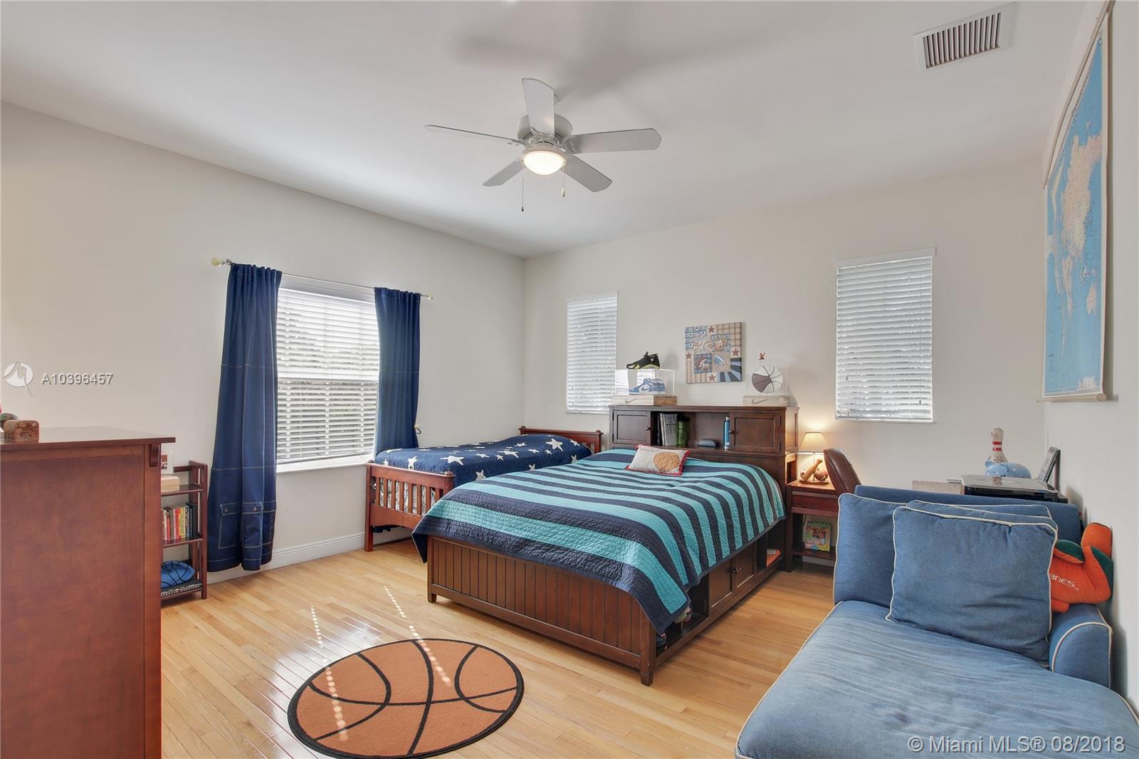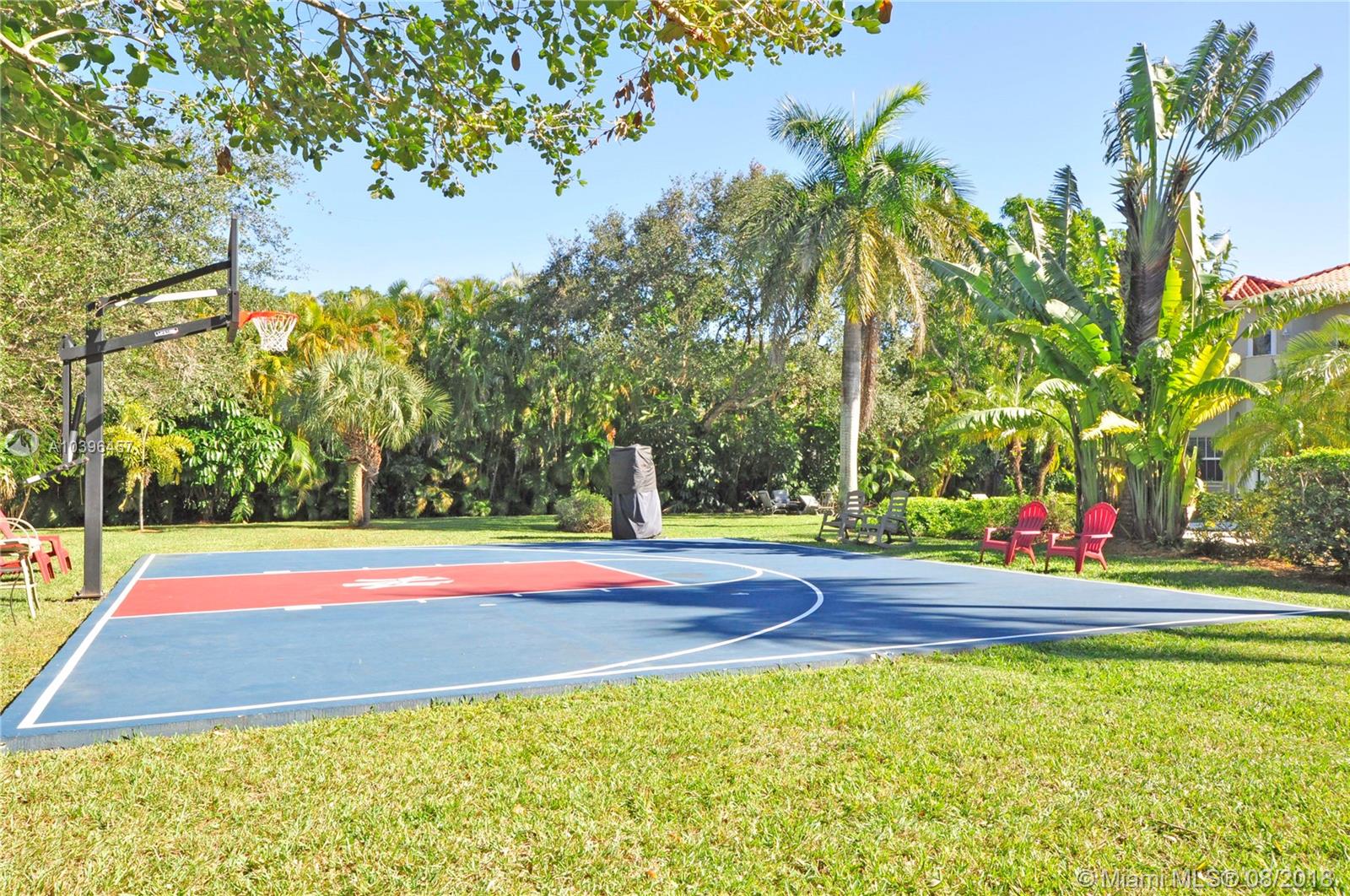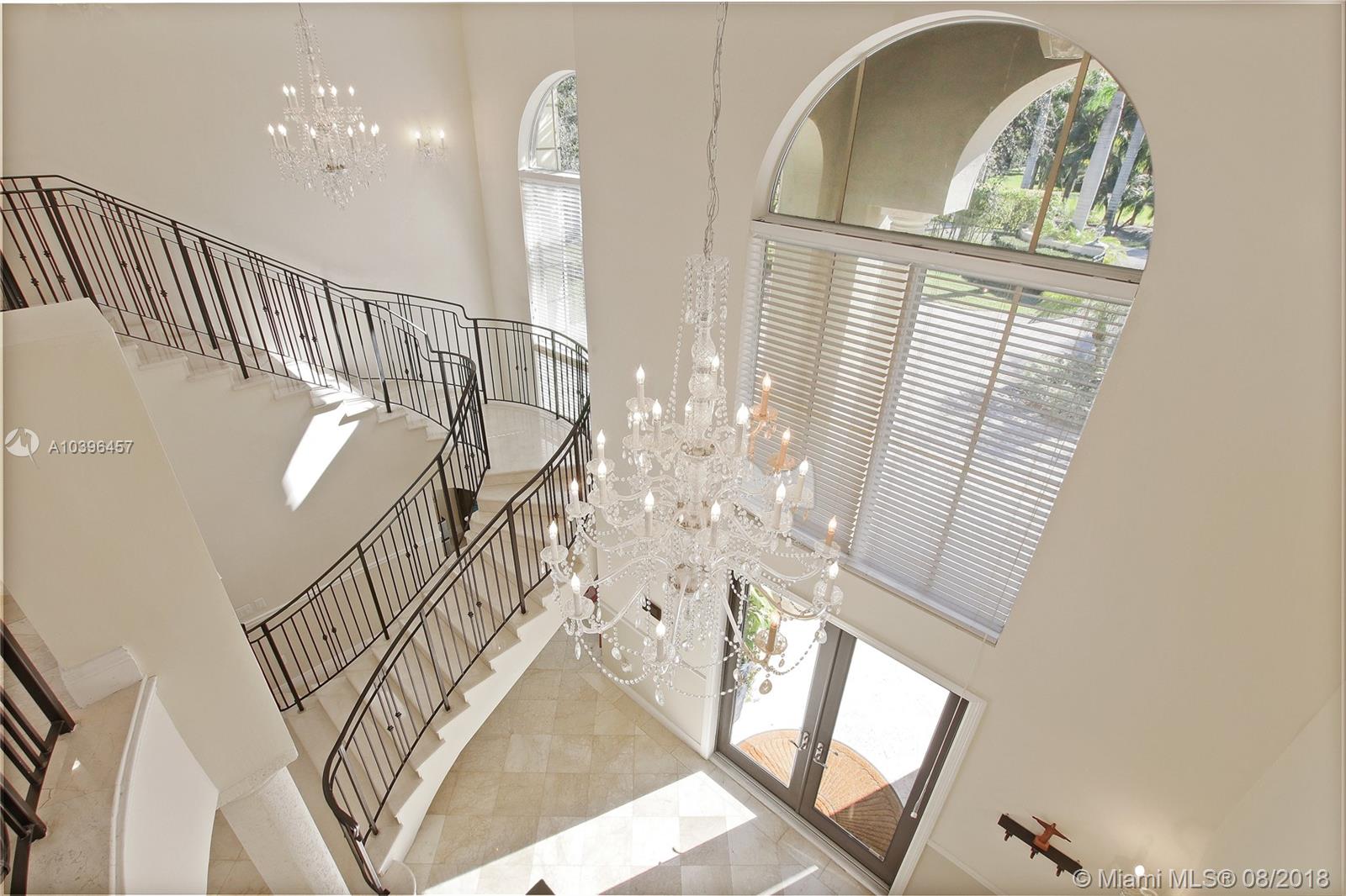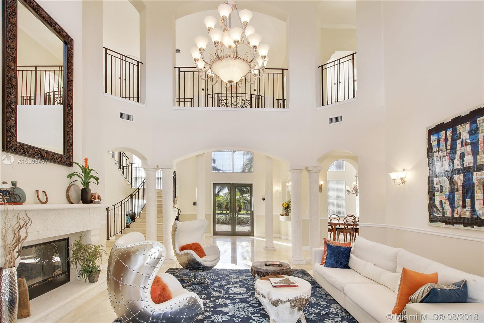 A majestic gated Pinecrest estate on a .9 acre oak-laden lot w/an exceptional floor plan & timeless elegance. Features include: impact windows & doors, 7 bedrooms (en suite), 7 1/2 baths, Family room, 3-car garage, heated Pool/Spa, & Sports Court. Grand foyer w/sweeping staircase, elegant Living room w/24 ft ceiling, Fireplace, & French doors that open to the expansive covered terrace & 51 ft heated pool & spa. Upstairs: Master suite w/a fireplace, sitting room, dressing room, 2 large walk-in closets, & access to a 63 ft balcony, plus 2 additional bedrooms. Downstairs: Guest room, Playroom, Home Theater,(potential in-law quarters); Staff rm, & 3-car Garage. The social areas enjoy 21+ ft ceilings & clerestory windows allow for natural day light. Room for a tennis court!