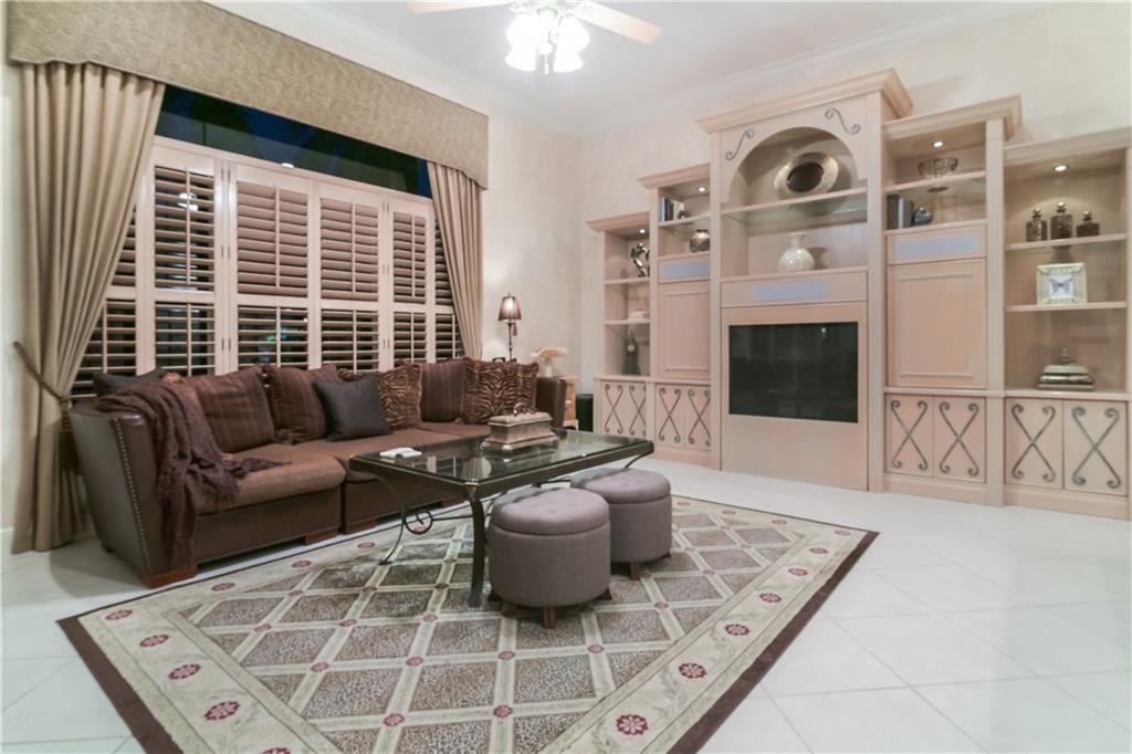 Upscale Gated Community, 5BR, 4.5 bath, On Lake, Pristine condition, RECENT IMPROVEMENTS !! triple split floorplan. Master Bath Updated w/marble floors & Countertops, 2 large walk in closets with additional wall closet space, Accordion Shutters,, Built in Wet Bar in family room, built in entertainment center, custom closets in all bedrooms, Cabana Bath to pool, Screened in Patio w/summer kitchen w gas grill & fridge, heated pool. Driveway cap. 10 cars, Cul de sac location, Clubhouse w/upgraded fitness center, tennis courts, spa