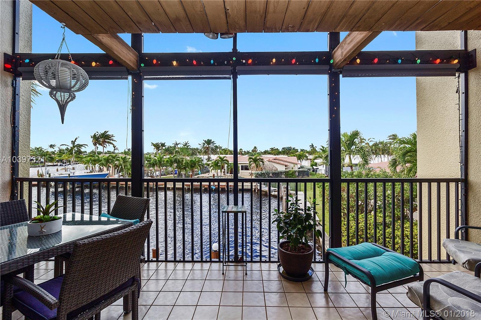 You will fall in love with this updated contemporary waterfront town home located in Nobel Point, a gated community in the heart of Pompano, steps from the beach. Nobel Point offers its residents 2 tennis courts, a clubhouse with heated resort style swimming pool, hot tub, sauna and fitness center. This particular unit features a deeded dock for your vessel as well as a bonus room used as a workshop. Upon entering, you will find a gourmet style kitchen with granite counter tops and stainless steel appliances, dining area and living room with screened lanai overlooking your dock and the waterway. On the 2nd floor, 2 expansive master suites with on-suite baths. One of the master suites features a screened balcony overlooking the downstairs lanai and canal with access to your rooftop terrace.