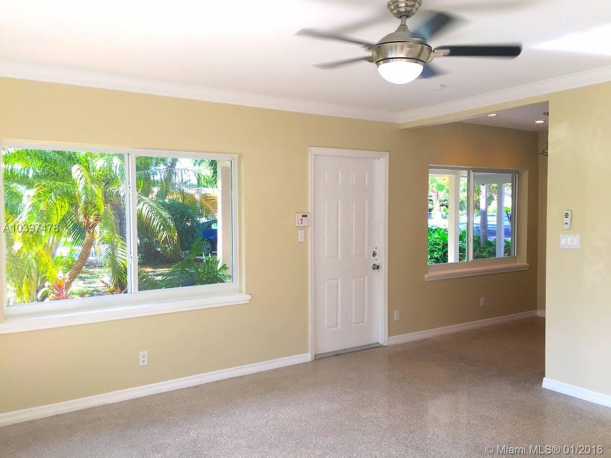 Welcome home to this tastefully renovated 2 bed 1 bath home surrounded by tropical lush settings. Your new home is located in much sought-after South Middle River, just minutes from Wilton Drive, in Wilton Manors, Flagler Village, downtown nightlife, Las Olas, the arts district and Fort Lauderdale beach. 1416 features polished terrazzo floors, crown molding, brand new impact windows, eat-in kitchen with 42" maple cabinets and granite counter tops, large closets in bedrooms, central A/C, ceiling fans in every room, security system, and separate laundry room with additional storage. The carport, covered front porch, large-private fenced in yard with lush landscaping, paver patio, well sprinkler system and outdoor lighting complete this quaint move-in ready home.